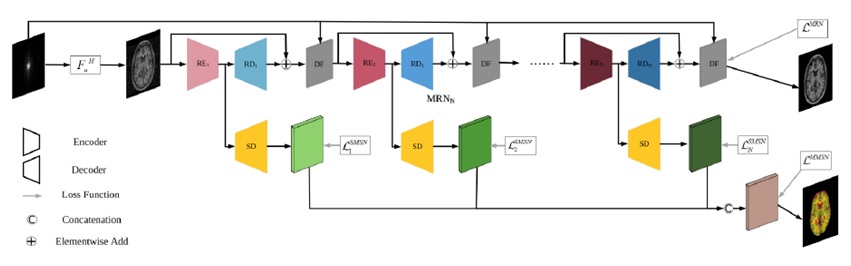 由博士生孙立言,硕士生樊志文合作完成的论文“Joint CS-MRI Reconstruction and Segmentation with a Unified Deep Network”发表在IPMI2019(医学图像分析领域顶会)。论文首次将压缩感知重建与分割两个不同层次的视觉任务统一在一个深度学习框架下完成,使得不同层次的视觉任务间可以互享信息,从而提高各自任务的性能。论文由丁兴号教授,黄悦副教授以及闽江讲座教授John Paisley共同指导。这是信息学院首次在IPMI发表论文。