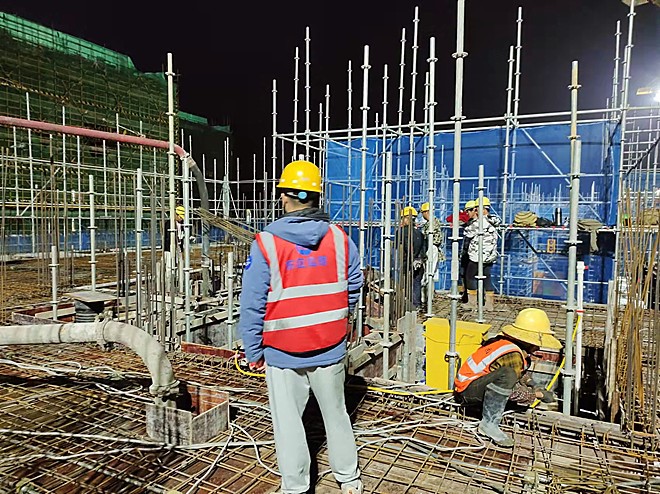 截至目前,I标段A、B栋完成十一层结构施工,Ⅱ标段C、D栋完成斜屋面结构施工,全面完成春节赶工任务。下一阶段,项目上下将持续激发为师生办实事的热情,继续保持良好的施工状态,加大人员投入,保质保量完成各项施工任务,确保实现II标段7月底完工、9月份投入使用;I标段完成供水供电配套设施投用,室外道路及景观工程满足II标段使用的目标。