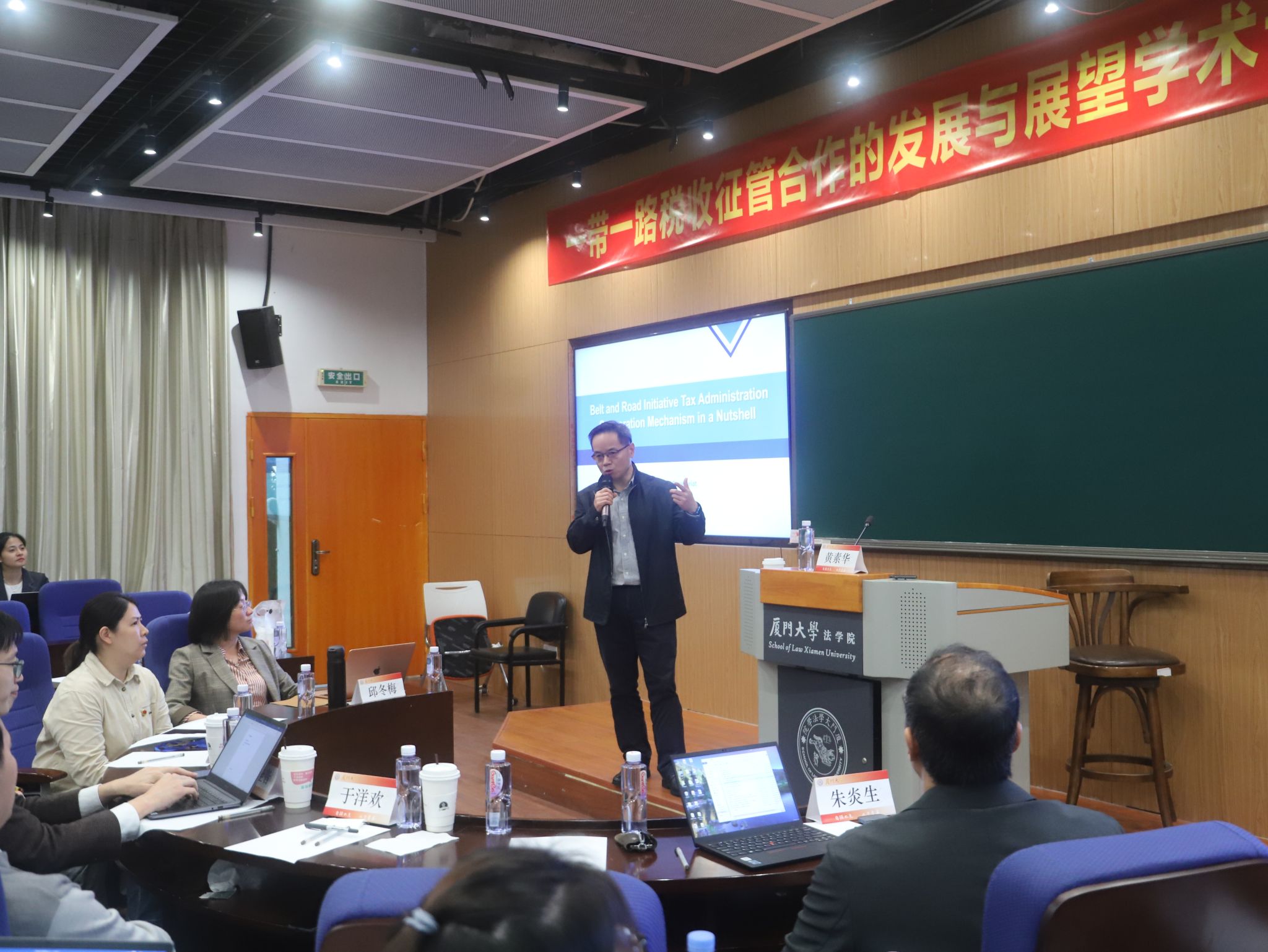 接着,岳颂从课堂学习、考察调研、实战演练、国别政策研讨四个方面介绍了学生在税务干部学院的学习情况;国际税务司国际合作处副处长郭佳音就加强项目宣传的工作方案做介绍和交流;项目主任、法学院教授朱炎生汇报了项目进展情况,并与厦门大学各部门负责人就教学管理的相关问题进行了交流与探讨。