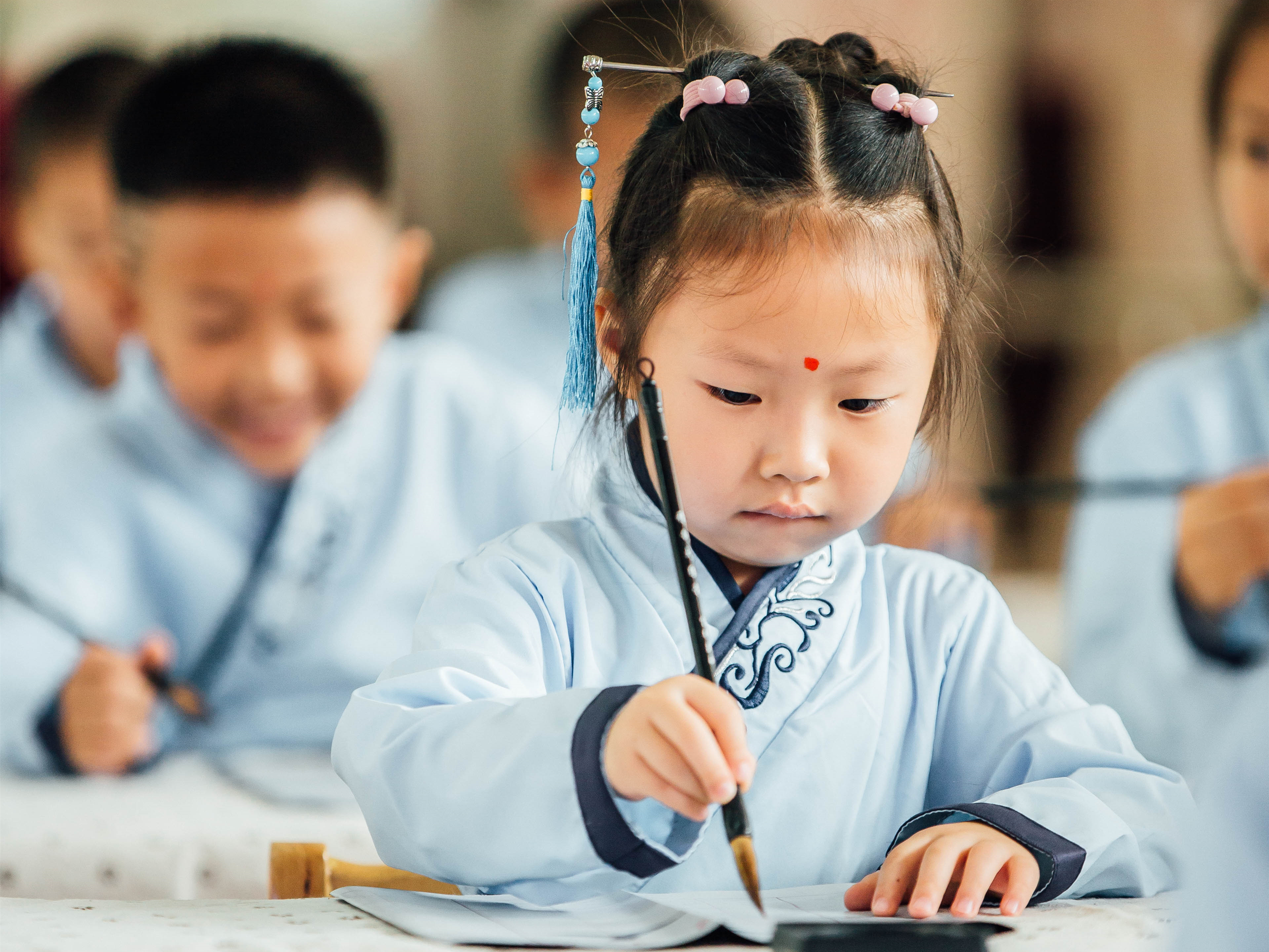 活动当天,孩子们穿着传统汉服,怀着激动的心情参加了中国传统文化人生四礼中的头一礼“开笔礼”。园长王美玲为“开笔礼”致辞,激励孩子们珍惜读书机会,勤奋学习,长大成为一个有智慧的人。伴随着悠扬的古乐,孩子们跟随着主持人老师的节奏,在仪式满满的程序中感受传统文化的内涵和魅力。仪式按照古代开笔礼的程序依次进行:正衣冠,朱砂启智,启蒙描红,感恩鞠躬,集体吟诵,击鼓明志,过状元桥。