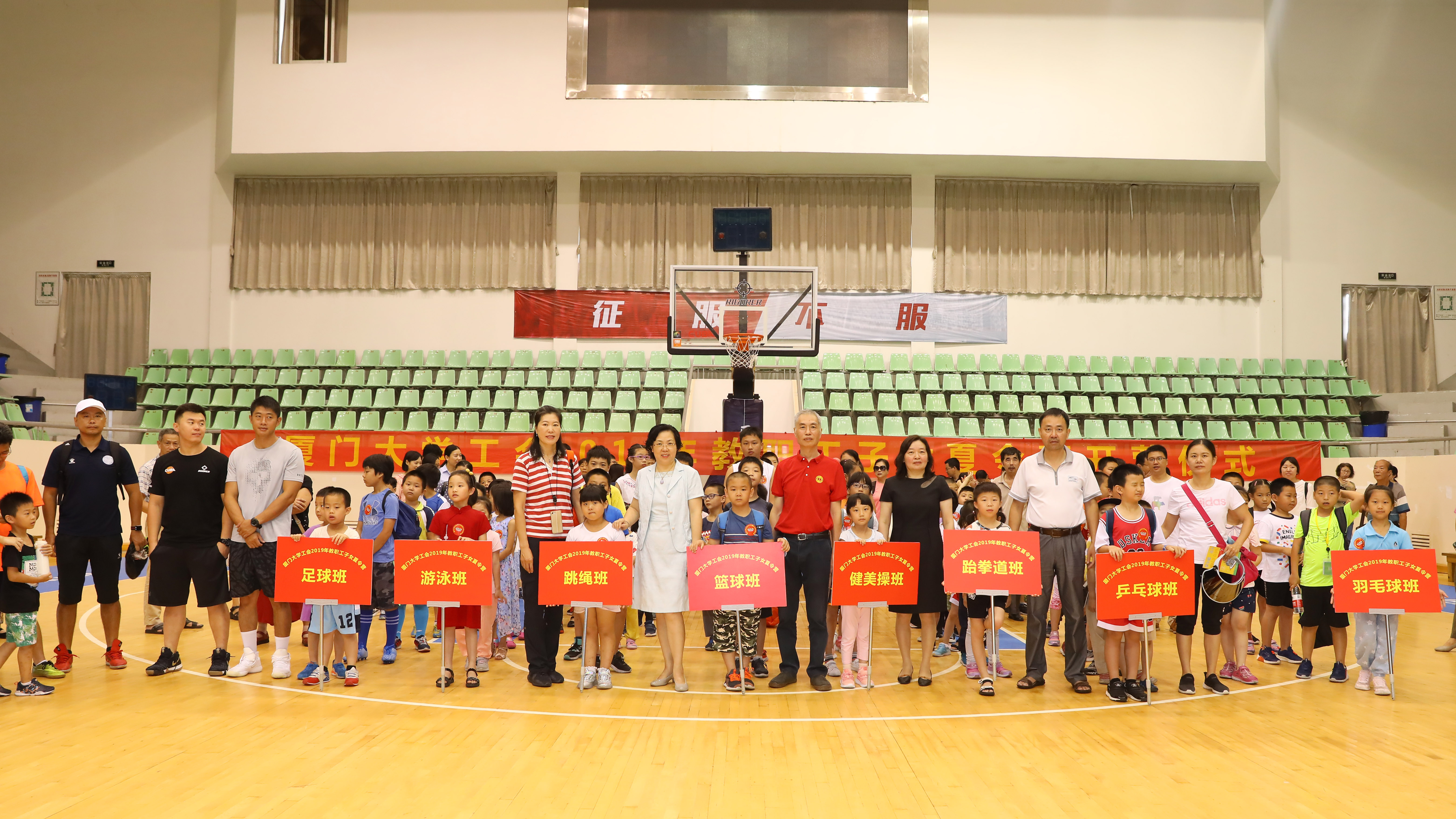 厦门大学工会2019年教职工子女公益夏令营于7月5日上午,在明培体育馆举行开营式,校党委常委、副校长邓朝晖出席并宣布夏令营开营,校工会常务副主席叶鹏飞主持开营式并致辞。本次夏令营有近650名教职工子女报名参加。