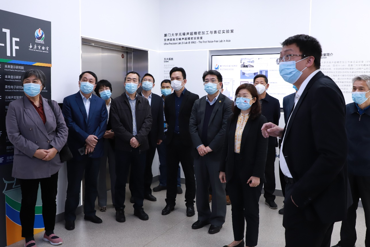 张志红一行参观了嘉庚创新实验室的无噪音实验室、硅基负极材料小试线、实验室科技成果展厅,重点调研了无噪声实验室的设备、工艺技术,硅碳负极项目科研生产及项目落地情况,氢能与燃料电池等科技成果及项目产业化转化情况等。