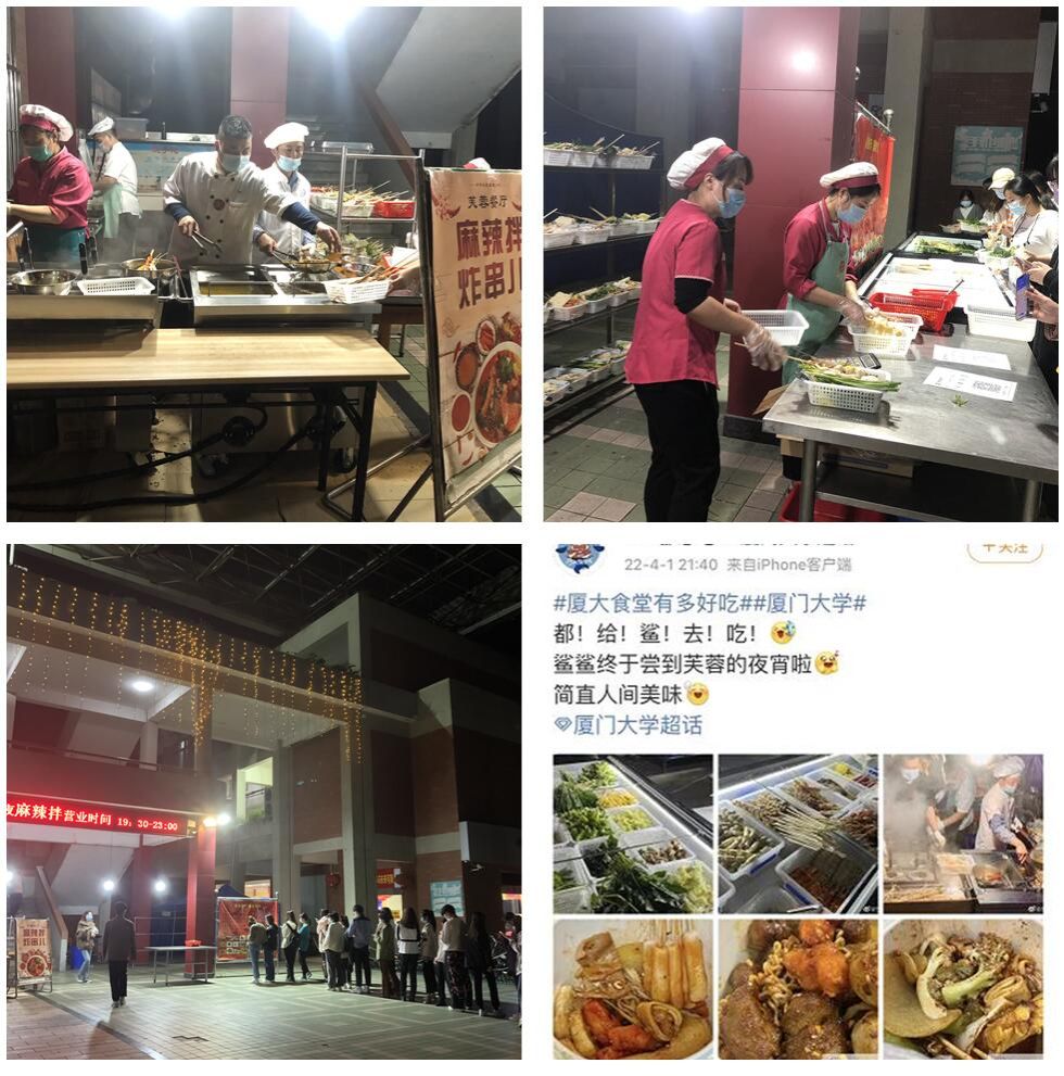 校园封闭式管理期间,为更好地满足师生需求,后勤集团在增加思明校区颂恩楼、凌云片区、石井片区、芙蓉隧道口、学生公寓门口、海韵16门口六个供餐点的基础上,还在思明、翔安、漳州校区各餐厅纷纷增加夜宵供应。