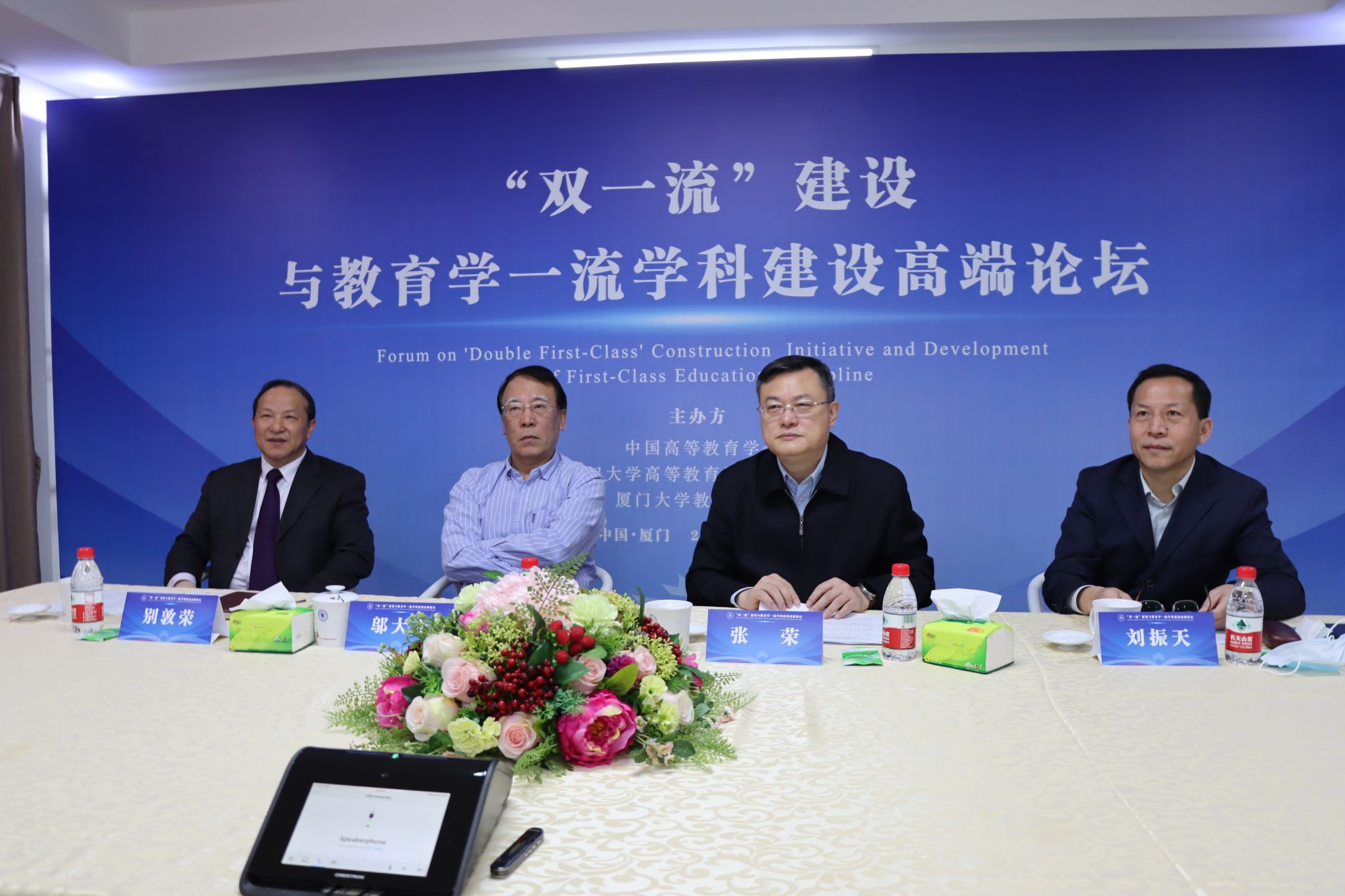 4月9日,由中国高等教育学会、厦门大学高等教育发展研究中心和厦门大学教育研究院共同举办的“‘双一流’建设与教育学一流学科建设高端论坛”以线上线下相结合的方式举行。中国高等教育学会副会长、教育部原副部长林蕙青,北京大学原校长林建华,中国高等教育学会原会长瞿振元,中国教育学会原会长钟秉林,大连理工大学原党委书记张德祥,厦门大学党委书记张荣出席会议。来自清华大学、北京师范大学、华东师范大学、华中师范大学、东北师范大学、西南大学、华南师范大学、厦门大学等国内多所高校和研究机构的高等教育领域著名专家学者以及师生代表齐聚云端,共同擘画“双一流”建设新蓝图。