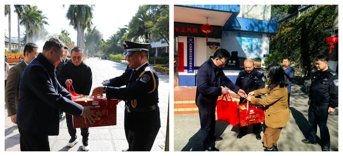 1月28日,农历除夕,校党委常委、漳州校区管委会主任、嘉庚学院党委常务副书记黎永强,学校办公室主任、翔安校区管委会主任陈怀锋也分别带队慰问了漳州校区和翔安校区春节期间在岗人员。