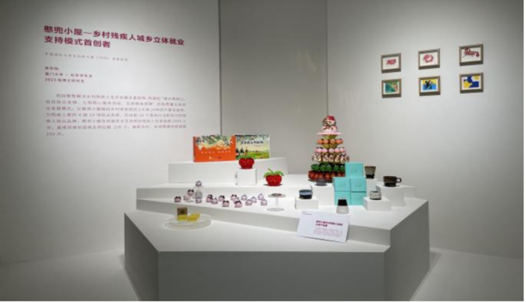 “憨兜小屋—乡村残疾人城乡立体就业支持模式首创者”项目聚焦乡村残疾人生存发展多重困境,构建起“城乡两端口、双向就业支撑、七类核心服务供给、五层精准保障”的高质量立体就业发展模式。憨兜小屋面向乡村家庭提供3大类14种资产建设选择、为残疾人提供4级24项就业选择,形成10个具有行业影响力的就业品牌。此次参展是该项目继荣获中国国际大学生创新大赛(2024)金奖后的又一重要突破,充分体现了其良好的服务成效和持续创新能力。
