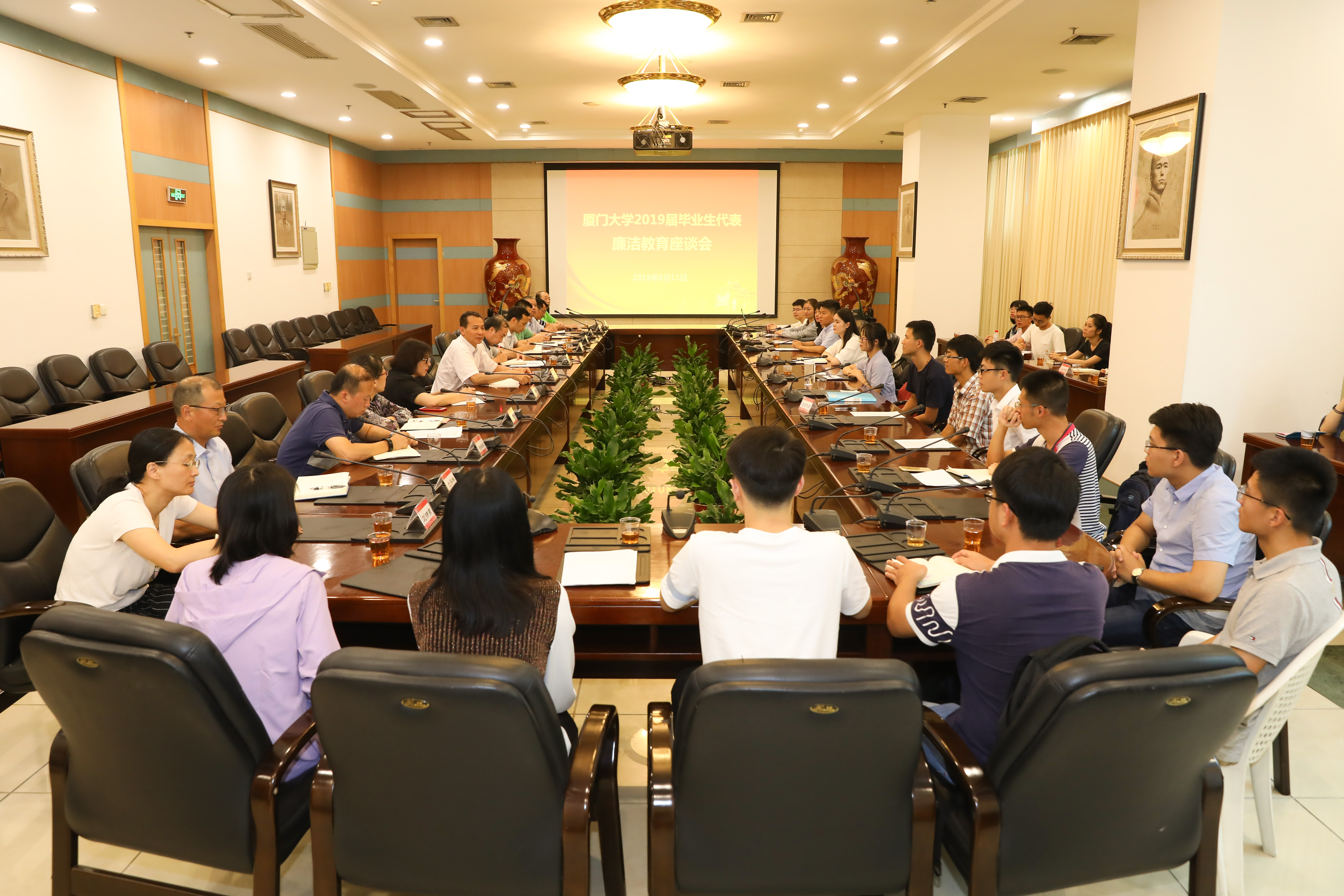 6月11日下午,学校在颂恩楼215会议室召开2019届应届毕业生代表廉洁教育座谈会。在临近毕业重要节点,将廉洁教育课作为离校前引导毕业生走好人生社会的第一步,教育引导毕业生在人生道路上走得更正、走得更远。校党委副书记、纪委书记赖虹凯出席,纪委办、组织部、宣传部、学生处、监察处、校团委等负责人、部分学院党委副书记以及本硕博应届优秀毕业生、选调生代表参与座谈会。纪委副书记、纪委办主任、巡察办主任林金枝主持座谈会。