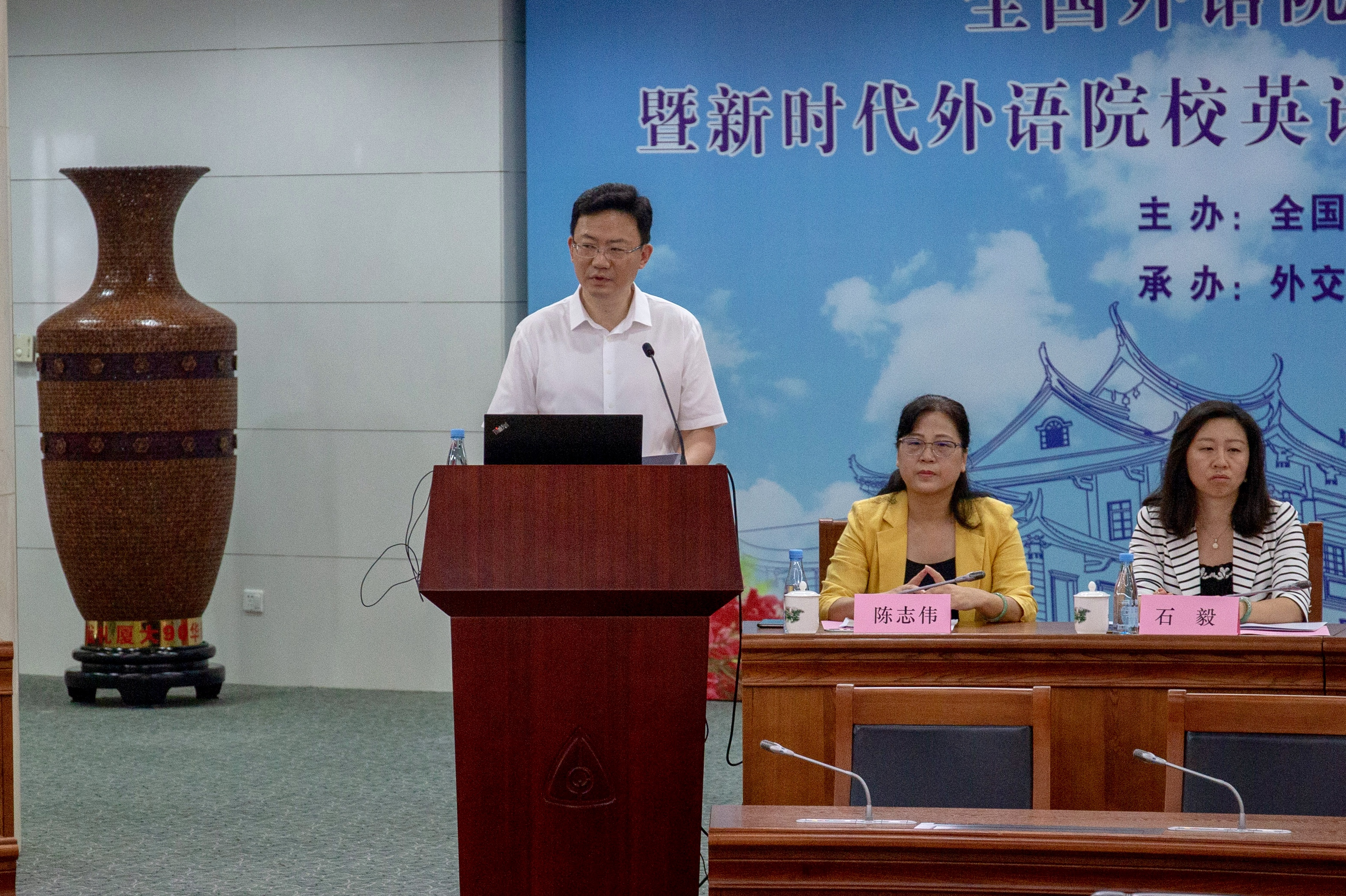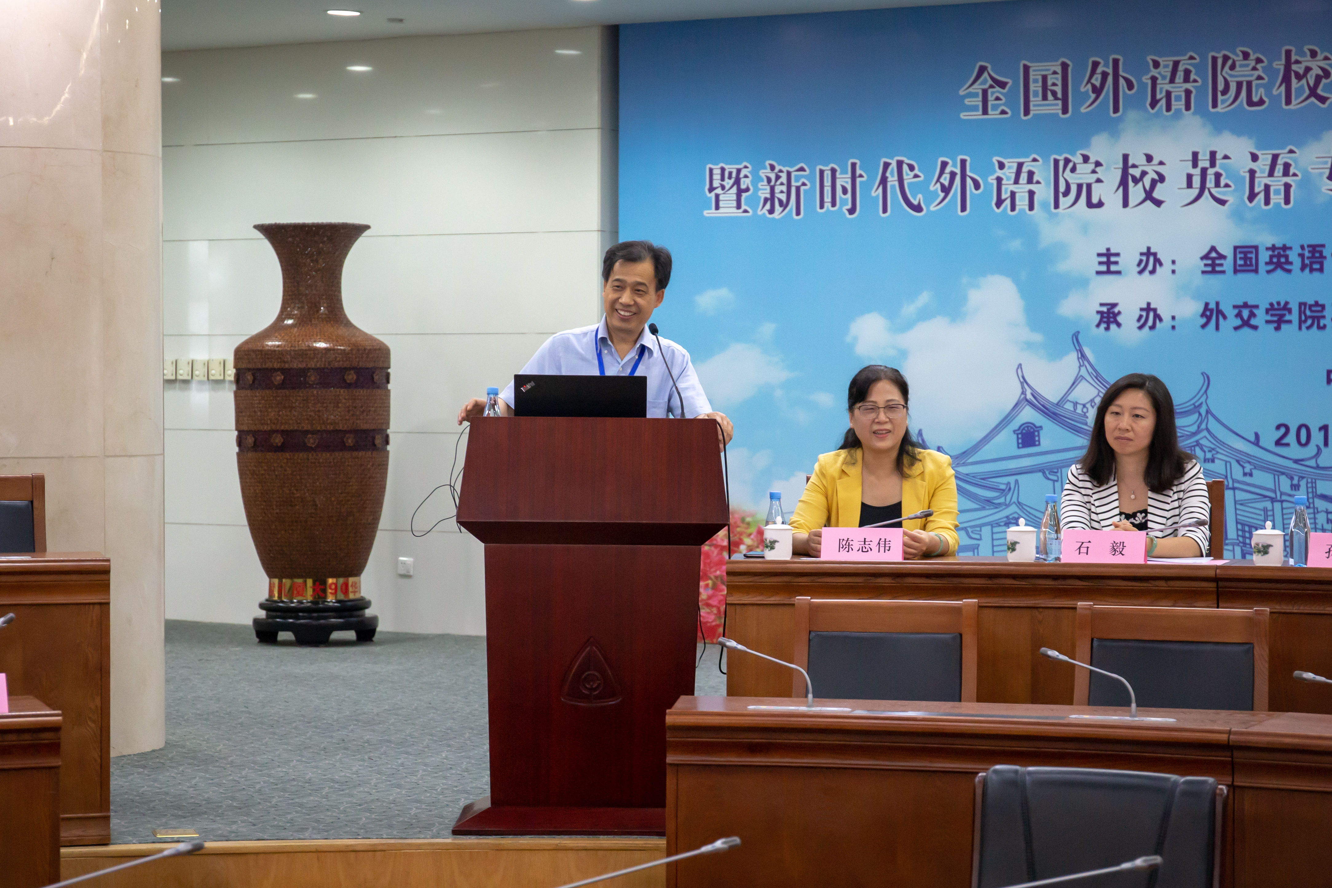 校党委常委、组织部部长、统战部部长孙理,教育部外国语言文学类专业教学指导委员会主任委员、北京外国语大学副校长孙有中教授,我校外文学院院长陈菁教授,外交学院英语系主任石毅教授先后致辞。开幕式由我校外文学院党委书记陈志伟主持。