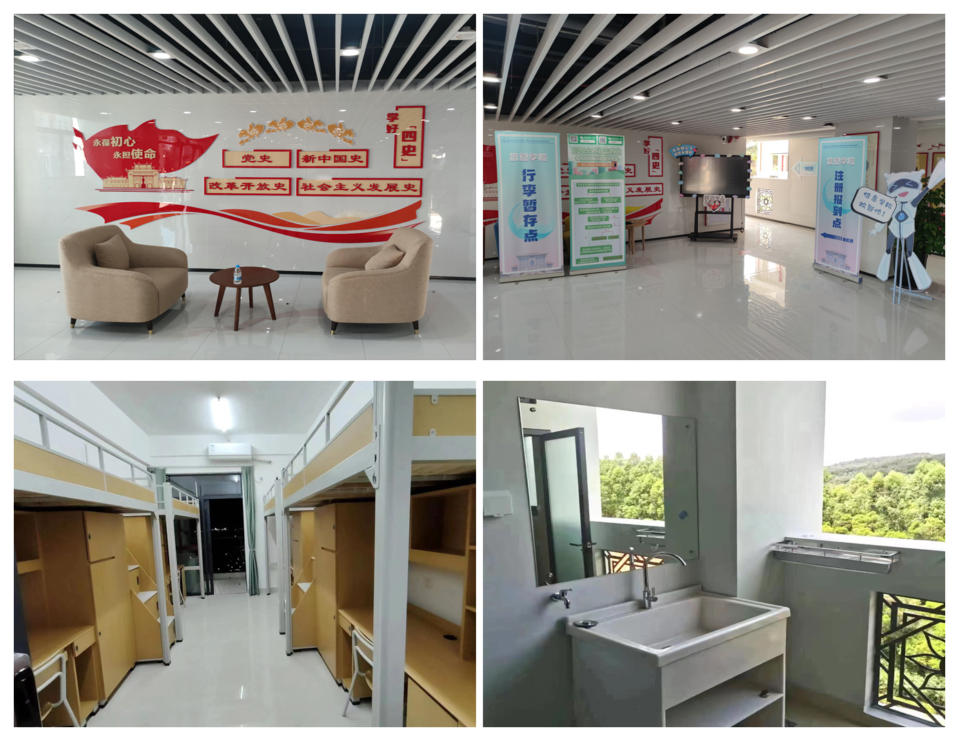 为提供舒适、温馨的住宿环境,项目前期进行了精心谋划,公寓外观延续嘉庚建筑风格,与其他校园建筑一脉相承;公寓内设施设备配套到位,每栋楼有四台电梯,楼内设有开水间;宿舍内床柜、桌椅、空调齐全,盥洗池、卫生间位于阳台,浴室采用干湿分离,为学生生活带来了便利。空间使用方面充分考虑师生需求,公寓一楼设计了无障碍宿舍,为行动不便的学生提供服务;设置了一站式学生社区,为师生提供学习、交流空间;公共区域进行了专项装修设计,公寓办也精心布置了文化氛围。此外,公寓设有地下停车场,便于学生停放自行车,保障地面环境整洁。