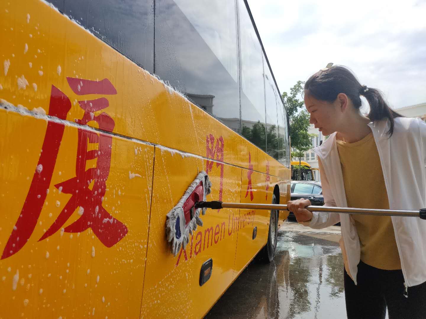 部分研究生党员参与了校车清洗工作。看着清洗完之后干净锃亮的校车,硕士生党员主翔宇说:“劳动不是一句口号,它需要落实到每一件小事上,体现在我们日常的行动中,去做就对了,去做就踏实了,去做就能理解了。”