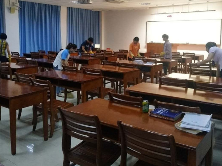 2017级团支书伍绍嘉利用课余时间组织并参与了教室清扫工作,他感叹说:“劳动创造价值,后勤物业的阿姨们每天的劳动带给了我们干净整洁的教室和良好的学习环境。经过这次的劳动体验,我感受到了她们的辛苦和不易。2个小时的劳动,脚上的酸痛只是表面的,内心里对劳动的尊重才是这2小时教给我最宝贵的东西。”