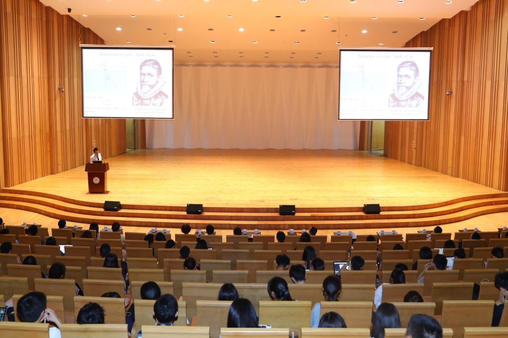 尽管讲座内容专业性较强,但陈焕阳教授通过一系列活泼生动的图示和贴近生活的举例,如分享自己曾于演武大桥上看见的海市蜃楼和美国“最孤独的公路”具体说明光的折射的影响,剖析蝴蝶及变色龙颜色的呈现其实是由它们翅膀或皮肤的微纳结构决定等等,深入浅出地为现场师生呈现了一场学术性和趣味性兼备的讲座。讲座的最后,陈焕阳教授以热点话题黑洞作为结尾,与大家一起展望了变换光学的未来发展和应用。