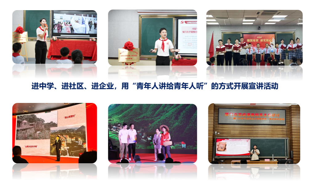 强化宣讲,拓宽提升学生综合能力的舞台。读书会成员进中学、进社区、进企业,用“青年人讲给青年人听”的方式开展宣讲活动,在服务社会中提升自我;主动肩负传播厦大革命文化的使命担当,把“课堂思政”与“思政课堂”巧妙融合,多次赴厦门六中、故宫小学等地开展理论宣讲,推动大中小学思政课一体化建设,多名成员在教学技能比赛中摘得省级荣誉。读书会成员还面向全省高校师生讲授思政微课“以新发展理念引领高质量发展”,思政微课在线观看人数超过170万人次,在全省高校范围内掀起热议。