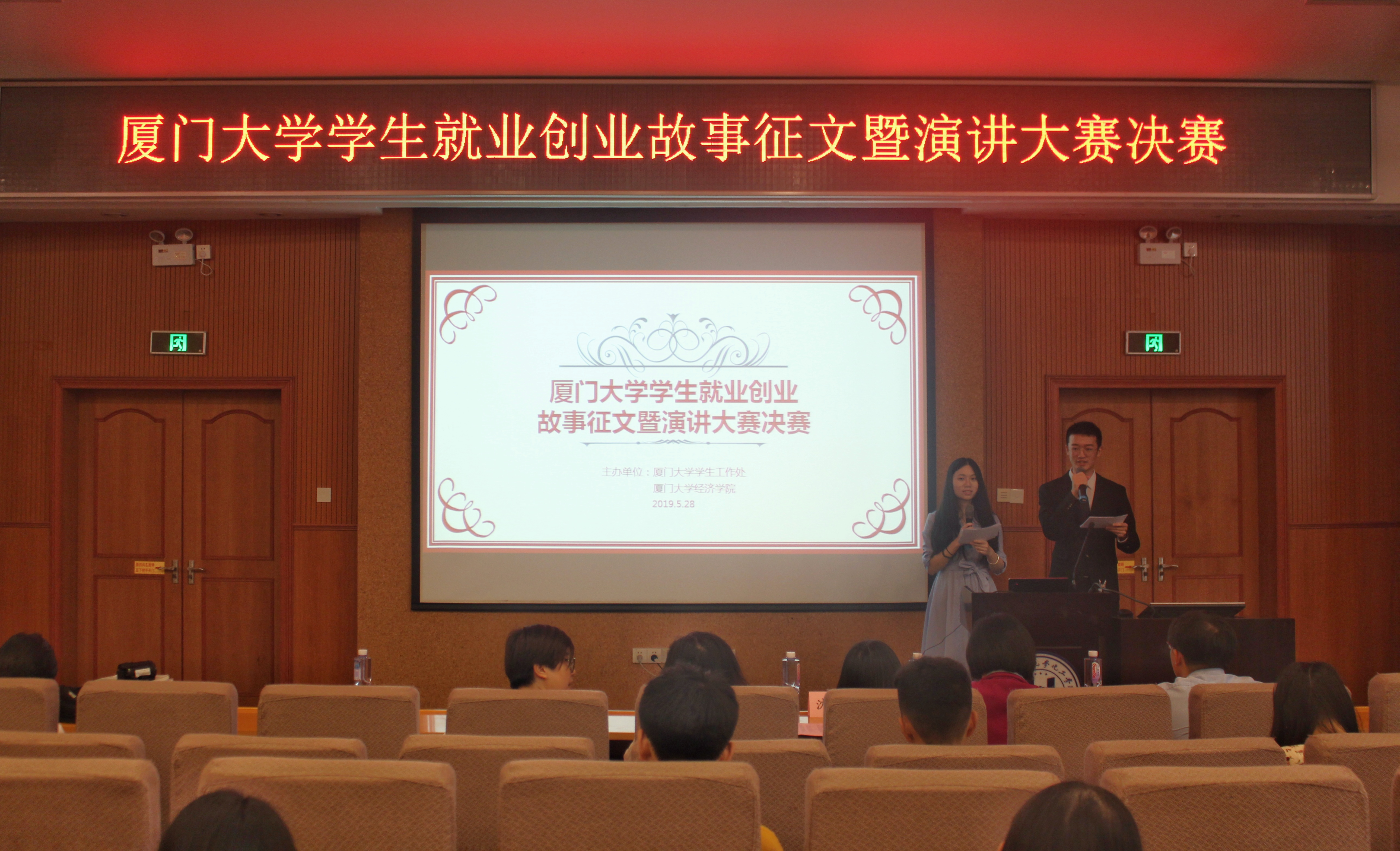 5月28日下午,由学生处和经济学院联合举办的厦门大学学生就业创业故事征文暨演讲大赛决赛于化学报告厅圆满落下帷幕。活动旨在积极倡导“国家至上,事业为先”的就业理念,引导广大学生“登上大舞台,做出大贡献”,进一步培养学生的家国情怀和服务国家发展战略意识,坚定他们到国家重要行业和领域就业的理想信念,全面提升学生就业核心竞争力,促进毕业生实现更高质量就业创业。校学生处副处长高斌出席比赛。经济学院党委副书记周蕾、外文学院党委副书记沈丽秀、能源学院党委副书记孙佳和管理学院职业发展中心主任王燊担任评委。