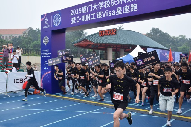 5月25日上午,2019年厦门大学校庆环校跑暨C-run工银Visa星座跑活动于思明校区演武场拉开帷幕,3000名厦大师生奔跑在悠然的棕榈树林荫道中,用一场精彩的校园路跑赛为母校98周岁庆生。我校副校长邓朝晖、中国工商银行厦门市分行副行长曾桂华、特步集团副总裁吴联银出席。