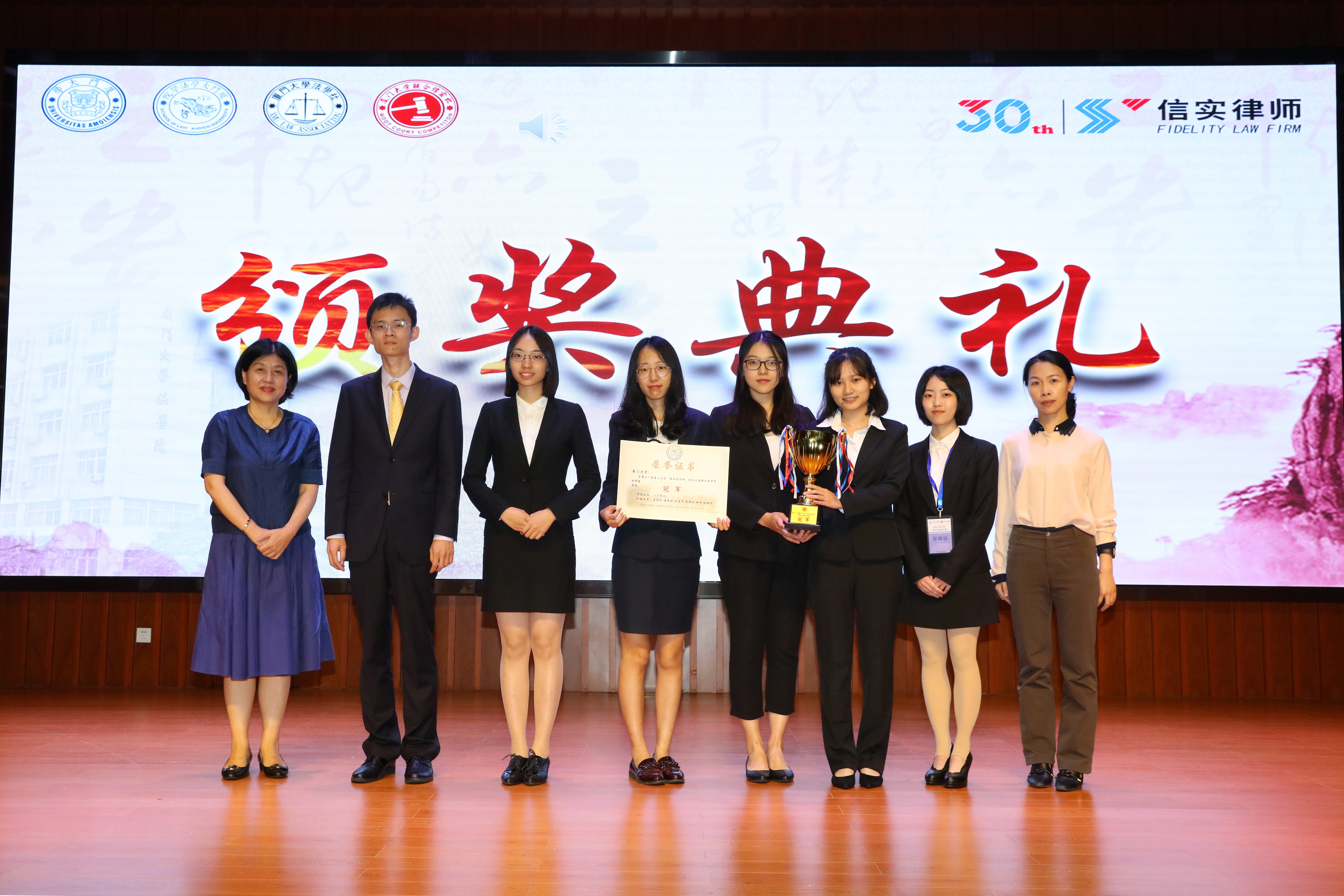 最终厦门大学代表队凭借着更为出色的表现获得本届比赛的冠军,山东大学代表队获得亚军,浙江大学代表队和南京大学代表队荣获季军。此外,清华大学代表队、福州大学代表队、同济大学代表队和华东政法大学代表队获得“全国八强赛队”,清华大学代表队获得“最佳书状奖(起诉状)”和“最佳书状奖(答辩状)”;来自南京大学的冉雨茹和来自厦门大学的孙鹏程获“最佳辩手奖”荣誉称号。山东大学李昊洋、清华大学刘佳妮等23名同学,凭借着单场比赛中的优异表现,获“优秀辩手”荣誉称号。