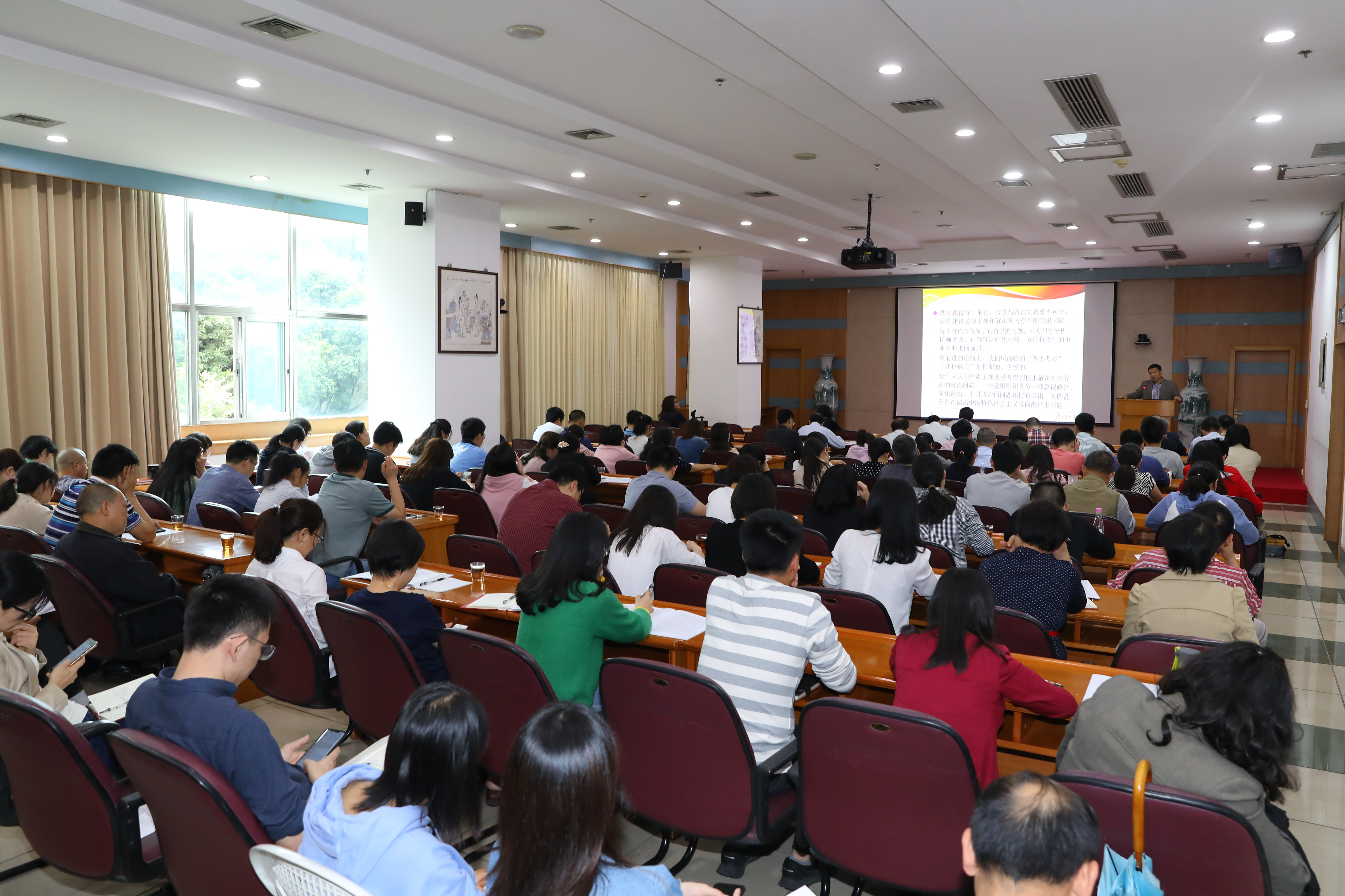 为深入学习贯彻习近平新时代中国特色社会主义思想和党的十九大精神,推进全面从严治党向纵深发展,5月6日下午,机关党委举办第十九期机关干部论坛,邀请校党委理论报告员、党委党校原副校长苏劲教授以“深刻领会《中共中央关于加强党的政治建设的意见》” 为题作专题辅导。机关党委书记梁卫中主持报告会。