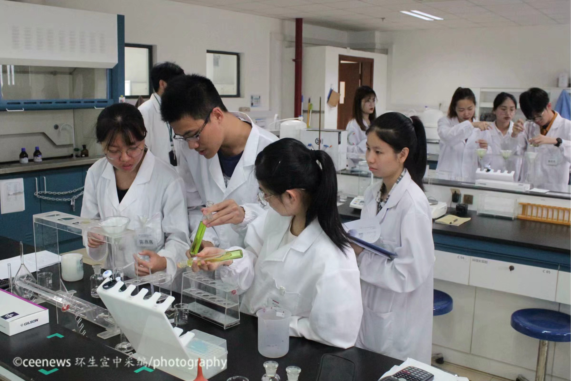 27日上午,专业组的决赛在金泉楼C211基础实验室举行。来自环境与生态学院和生命科学学院的8支队伍通过初赛的考核成功闯入决赛。决赛以“不同溶液萃取植物组织叶绿素效率实验”为考题,旨在对选手的实验素养和实验操作水平进行考查,而在实验过程中各队也都表现出了良好的实验素养和过硬的实验水平。该实验涵盖润洗、定容、萃取等基本操作,也包括数据处理分析等更加细致的实验环节,对参赛选手实验操作能力的考查十分到位。各队成员之间配合默契,实验过程中,从开始的植物组织的处理到最后的数据处理,各个环节都进行得井然有序。在完成最后的数据处理和实验分析后,各队相继交上了令人满意的答卷。最终,来自环境与生态学院的“全都队”夺得了决赛专业组的冠军,获得了一等奖。同样是来自环境与生态学院的“三只小仙女一起飞队”和“社会主义核心价值观非常队”获得了二等奖。“洋芋不是土豆队”、“ 佛系女孩队”和“Lucky-master队”获得了三等奖。