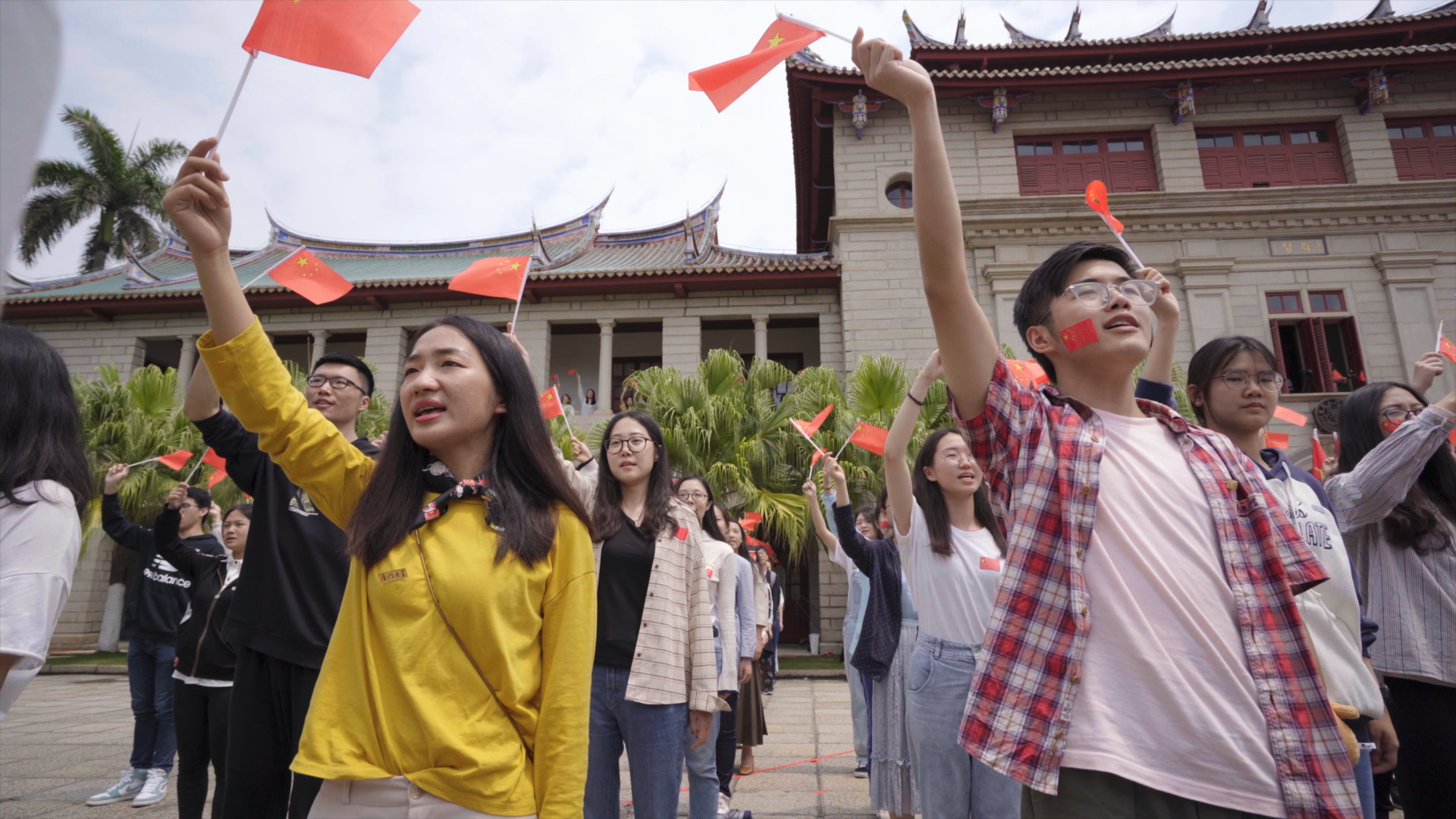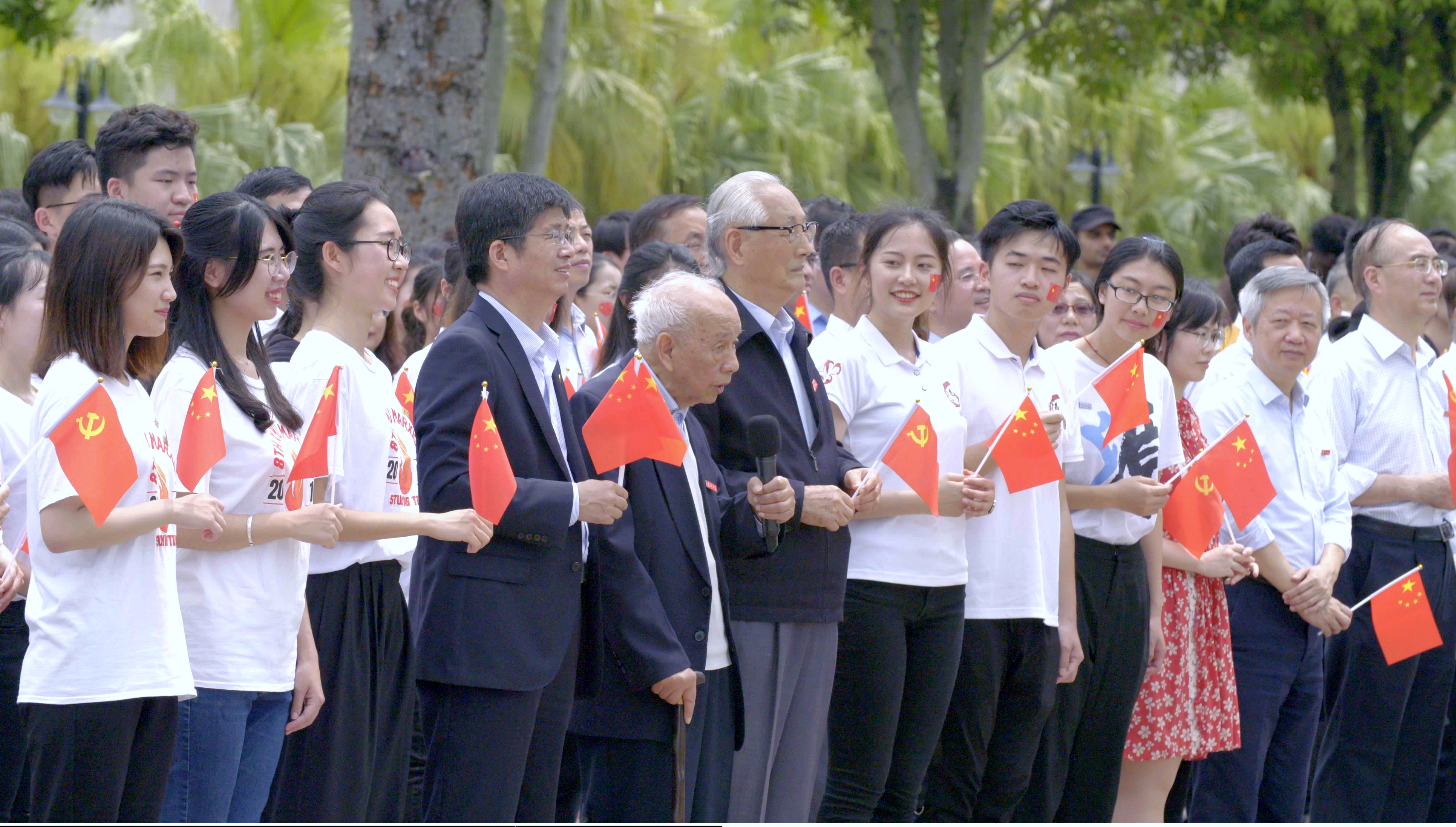 在众人欢呼声中,潘懋元教授走入人群,老先生怀着激动的心情说到:“青年是祖国的未来,青年是社会主义事业的接班人。青年强,则国家强;青年兴,则民族兴。”先生掷地有声的话语使在场师生倍受鼓舞,大家情绪高昂,跟随音乐节奏共同挥舞手中的国旗,齐声歌唱,活动在“祝福祖国繁荣昌盛!祖国万岁!”的口号声中落幕。