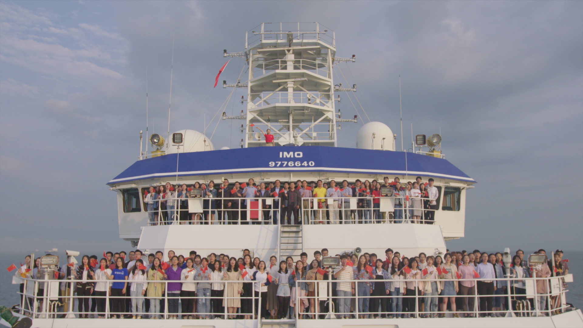 当日下午,地学部200余人师生登上我校拥有完全知识产权的海洋科学综合考察船——“嘉庚”号。下午3时,科考船缓缓从海沧通达码头驶出,船舷上悬挂着 “自强不息、止于至善” 的校训及“厦门大学‘嘉庚’号祝祖国繁荣昌盛”的横幅。船上全体师生与科考队员面朝大海,远眺校园,一同用嘹亮的歌声献礼中华人民共和国成立70周年,歌声中饱含着对祖国无限的热爱与深深的祝愿。“歌唱祖国”,唱响中国梦。