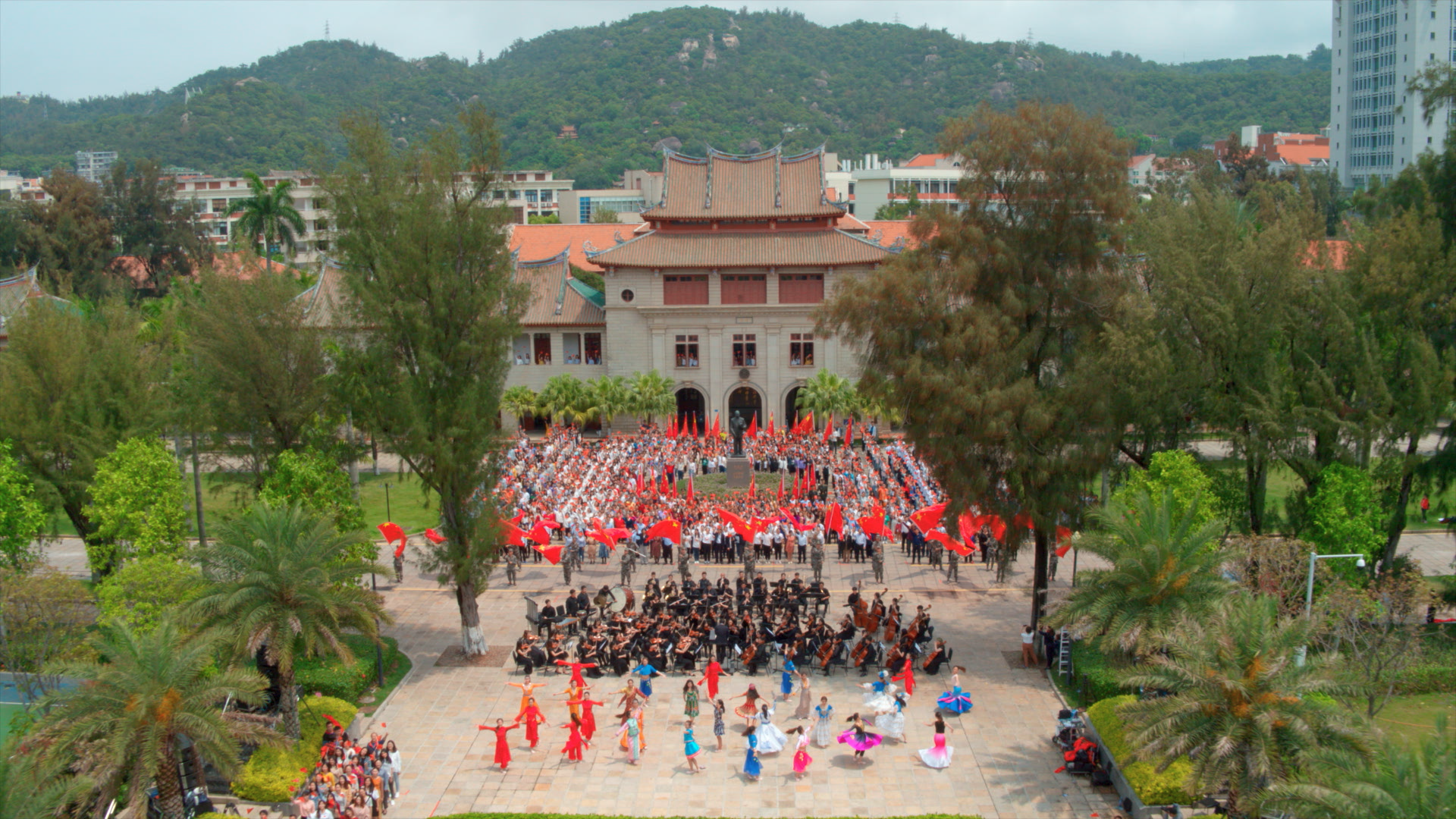 4月21日,我校在嘉庚铜像前举行盛大的“歌唱祖国”大型歌咏活动。各学院、研究院师生代表,校关工委、机关党委、翔安校区管委会、漳州校区管委会及各相关单位教职员工共计2000余人参与活动。其中包括百岁高龄的著名教育家潘懋元先生,90岁的吴宣恭教授、陈孔立教授,科研团队代表:韩家淮院士领衔的黄大年式教师团队、固体表面物理化学国家重点实验室团队、夏宁邵教授创新疫苗研究团队、两岸关系和平发展协同创新中心,以及国防生、思源班、马研班等学生骨干团队,部分港澳台学生,教师合唱团,学生合唱团、老年大学合唱团等参加活动。人群中也有学校领导、有普通师生,还吸引了不少外国留学生驻足观看。