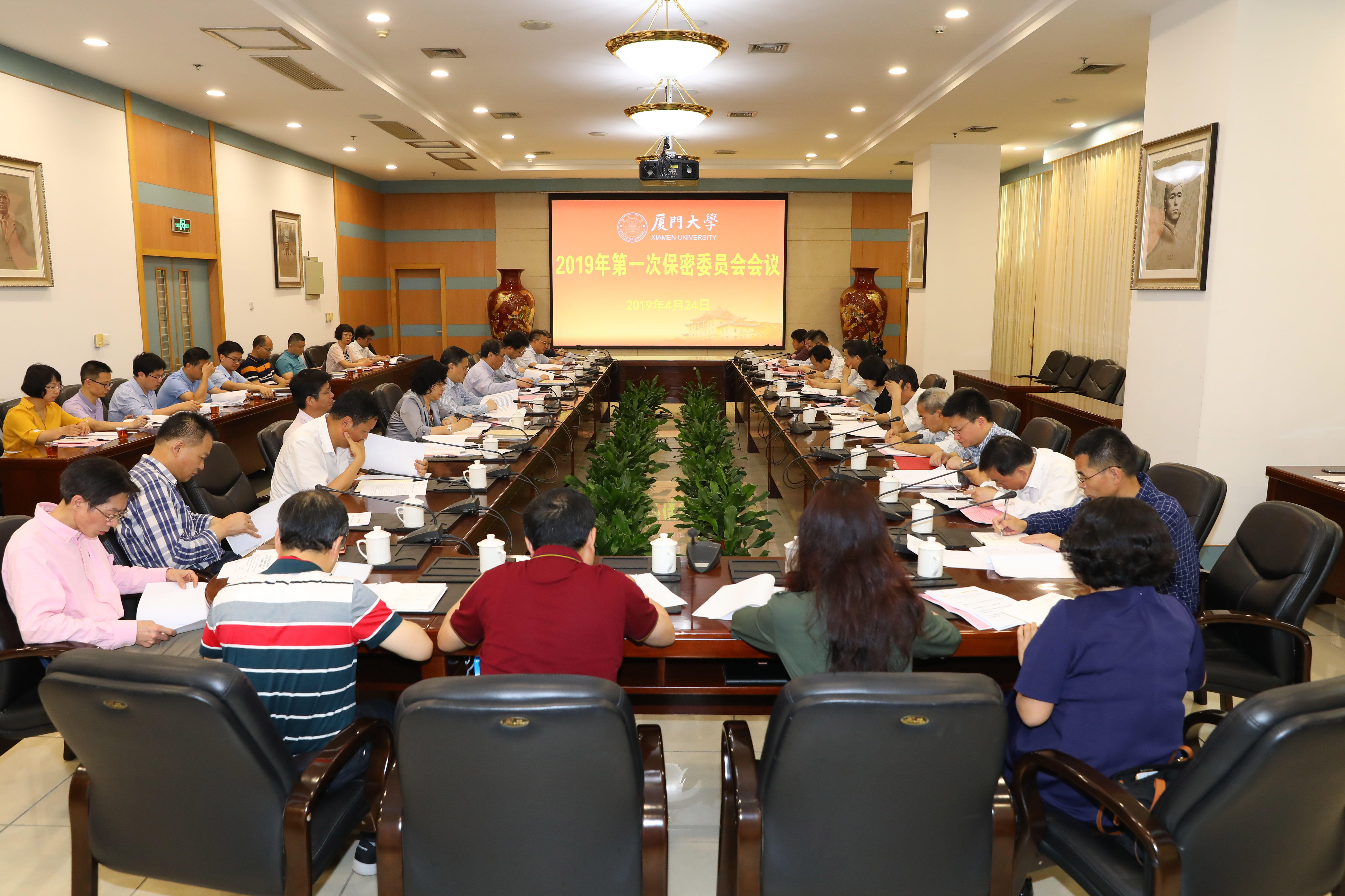 4月24日, 2019年度保密委员会第一次全体会议在颂恩楼215会议室召开。校长、校保密委员会主任张荣出席会议并讲话,副校长、校保密委员会副主任邓朝晖、江云宝,校保密委员会全体委员出席会议,有关部门分管保密工作负责同志列席会议。会议由校党委副书记、副校长李建发主持。