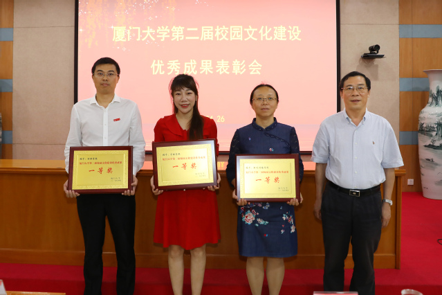 4月26日,厦门大学第二届校园文化建设优秀成果表彰会在颂恩楼220会议室举行。校党委副书记、副校长李建发,校党委常委、宣传部部长徐进功出席并为获奖者颁奖。宣传部、学生处、校工会、校团委负责人,各学院(研究院)分管领导、部门工会主席、团委书记和本届校园文化建设优秀成果获奖项目负责人等参加了会议。会议由宣传部副部长楼红英主持。
