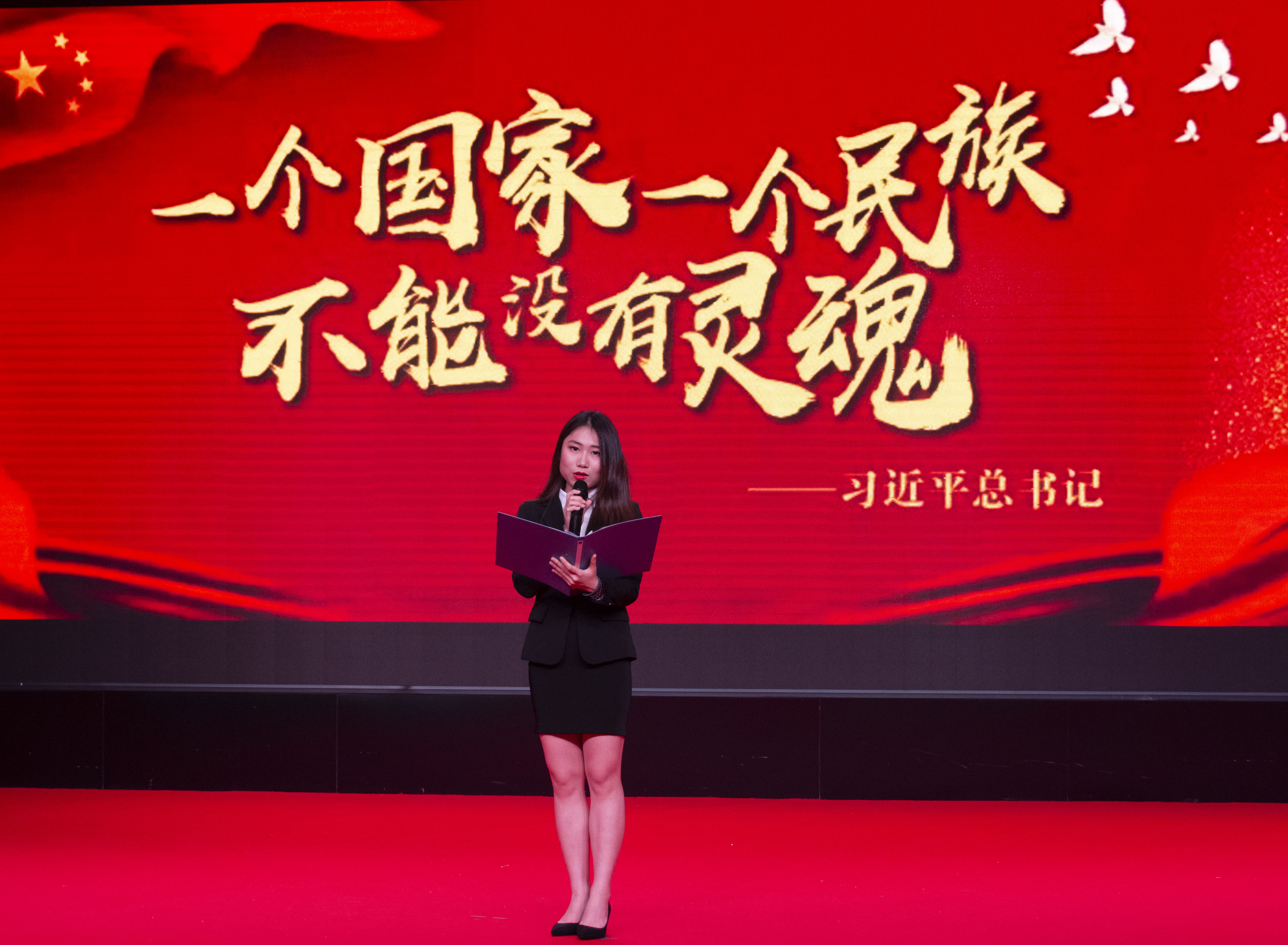诵读展演以电影配音《我的1919》片段节选拉开序幕,由建国大业和歌颂祖国两条主线贯穿,《五四运动献礼》、《可爱的中国》、《谁是最可爱的人》、《天上的草原》、《读中国》等经典选段在舞台上以诵读和情景再现的形式呈现给观众,最后以习近平总书记《一个国家、一个民族不能没有灵魂》一文圆满落下帷幕,无论是品书人还是诵读人都有意犹未尽的感觉,《读中国》的诵读人何婧嘉说:“以前未认真品读过这篇文章,因为要以诵读人的身份站在舞台上,对于文章要有自己的理解、感悟后才能完美诠释,在文章反复理解的过程中我看到了五千年的文化底蕴和时代的飞速发展,由衷的为自己是中国人而深深的自豪。”