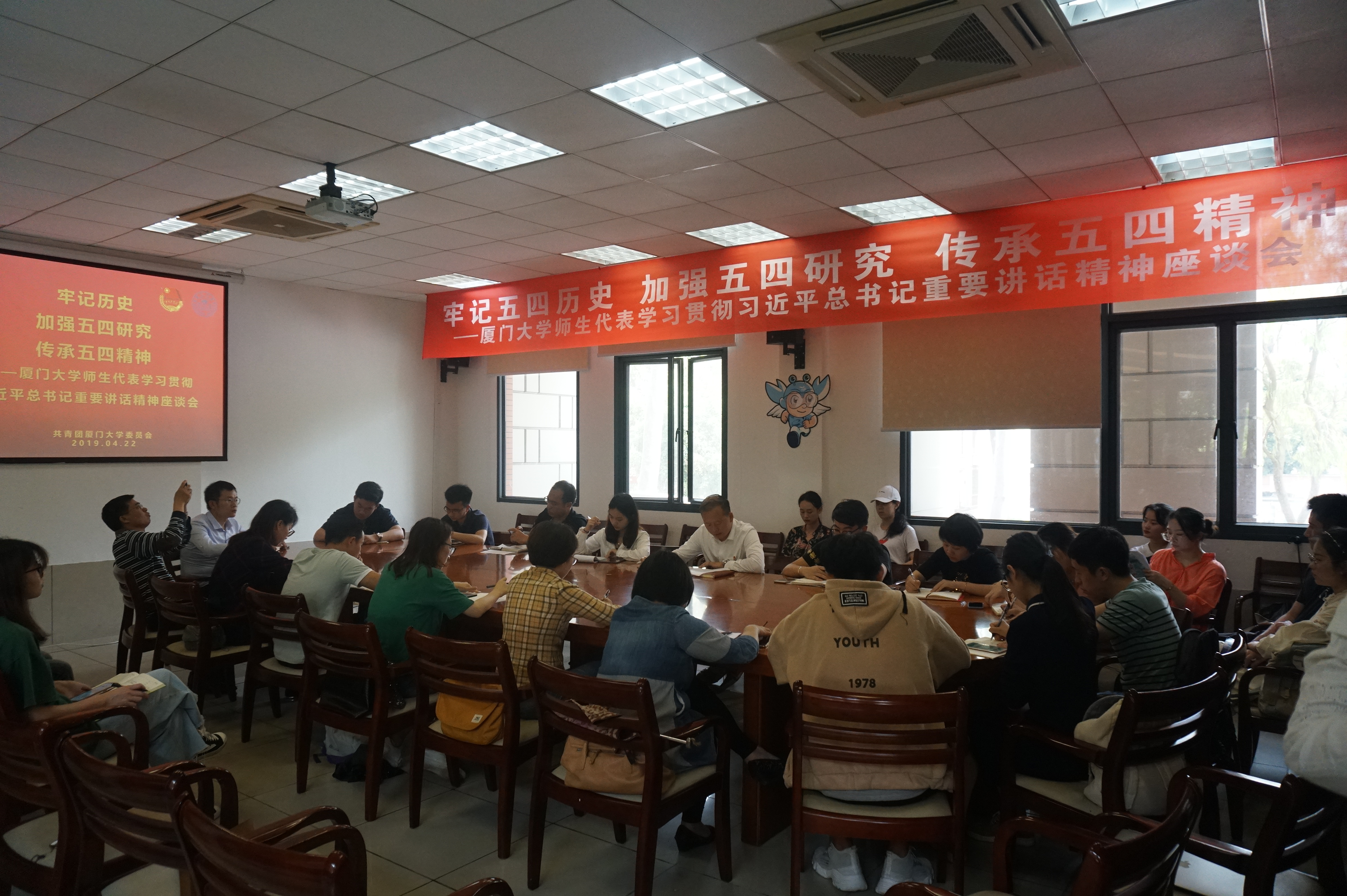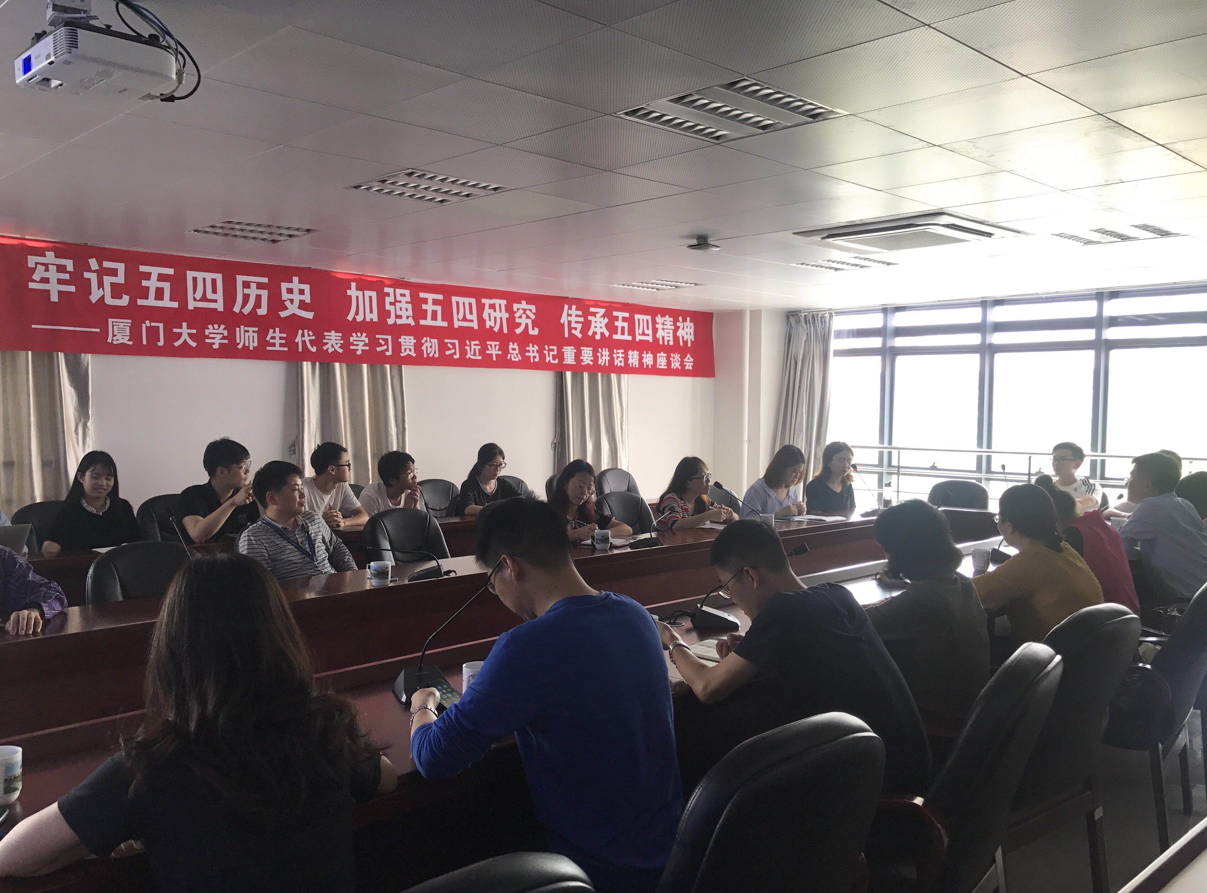 4月19日,中共中央政治局就五四运动的历史意义和时代价值举行第十四次集体学习。习近平总书记在主持学习时强调,我们纪念五四运动、发扬五四精神,必须加强对五四运动和五四精神的研究,以引导广大青年在五四精神激励下,为决胜全面建成小康社会、夺取新时代中国特色社会主义伟大胜利、实现中华民族伟大复兴的中国梦不懈奋斗。4月22日,校团委在思明校区、翔安校区、漳州校区同步举行 “牢记五四历史,加强五四研究、传承五四精神”——学习习近平总书记重要讲话精神座谈会。座谈会分别由校团委主持工作副书记洪海松、翔安校区团工委林文勤、嘉庚学院团委副书记李三伟主持,翔安校区党工委副书记、管委会副主任黄宇霞,学生工作部副部长、翔安校区学生办主任张清榕,及各学院团干、学生骨干就习近平总书记在中共中央政治局第十四次集体学习时的重要讲话交流了心得体会,大家纷纷畅谈自己的感想。