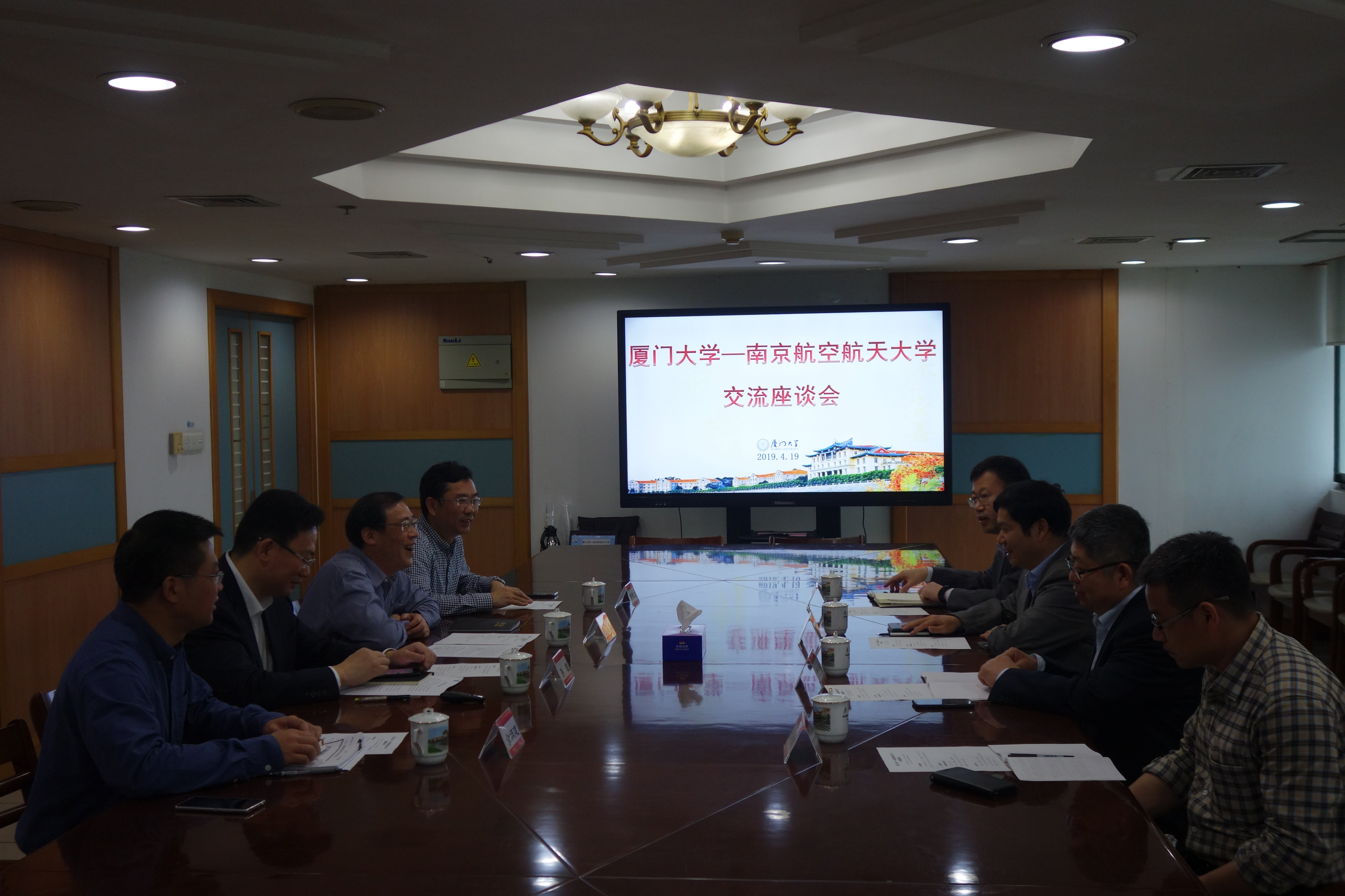 4月19日,南京航空航天大学党委书记郑永安,校党委常委、组织部部长李遥带队来校,就党的建设与思想政治工作、学科建设、教师队伍建设等方面做沟通交流。