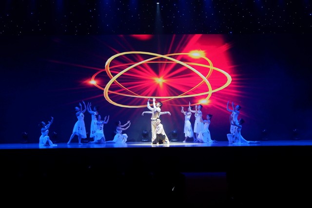 舞蹈《红旗颂》后,演出转入第三篇章《英雄大学》。舞蹈《黉门新生》与歌舞《厦门大学战歌》展现了被称为“带枪的大学生”的南强学子担负建设祖国的使命与希望。舞蹈《摘取科学的皇冠》演绎了陈景润先生勇攀科学高峰的故事。