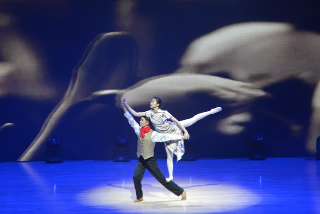 紧接着的舞蹈《足迹》,重演着当年学校被迫内迁长汀的艰苦岁月,将演出引入第二篇章《烽火自强》,在抗日战争年代,经历着严峻考验的厦大师生,在萨本栋校长的带领下依然弦歌不辍,创造辉煌。双人舞《烽火情抒》深情演绎了萨本栋校长及其夫人的故事,展现了萨校长甘于奉献的光辉形象。