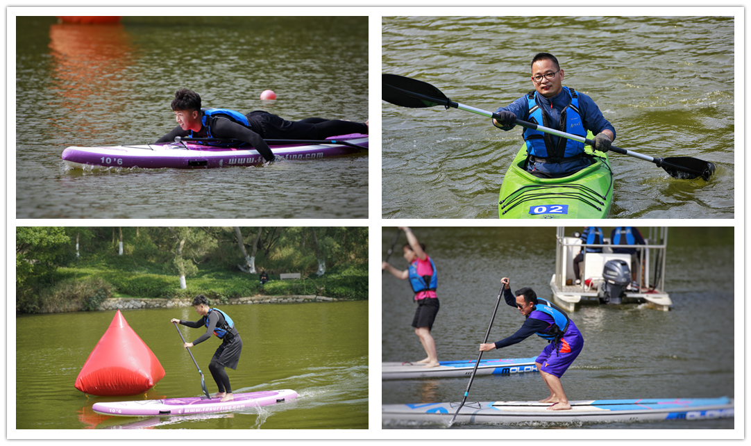 本届水上运动会开设的龙舟赛是中国一项古老的体育运动,历史赋予了它深厚的文化底蕴,目前龙舟运动结合了时代发展的需要,正积极走出国门,显示出其独特的中国文化魅力;皮划艇和桨板也以它们的新奇灵活越来越受到运动爱好者的青睐。值得一提的是,本次运动会首次开设了桨板趣味赛,参赛选手需依次绕过四个浮标,并在返程的途中趴板划行,趣味赛十分考验参赛选手的灵活和技巧,比赛过程中有些选手在穿越浮标时险些落水,好在及时稳住重心,方才化险为夷。趣味赛在思源亭附近水域举行,赛时木栏杆处聚集了许多观看的师生、游客,比赛趣味性强、扣人心弦。