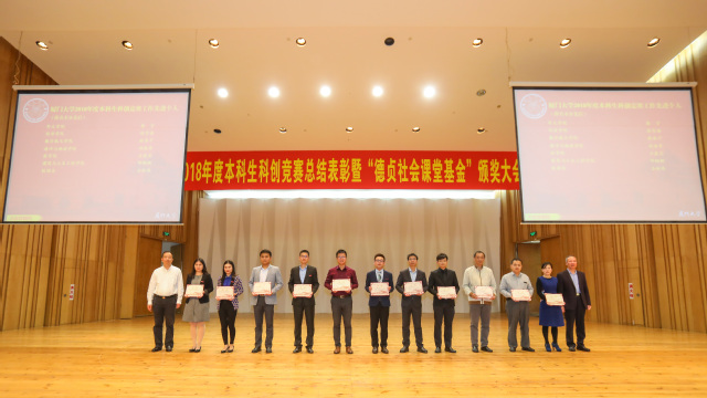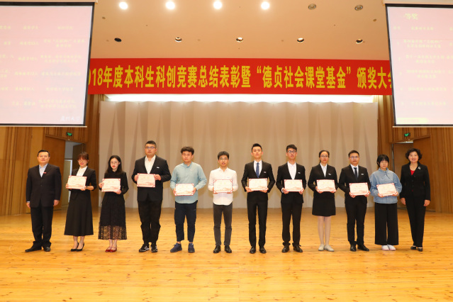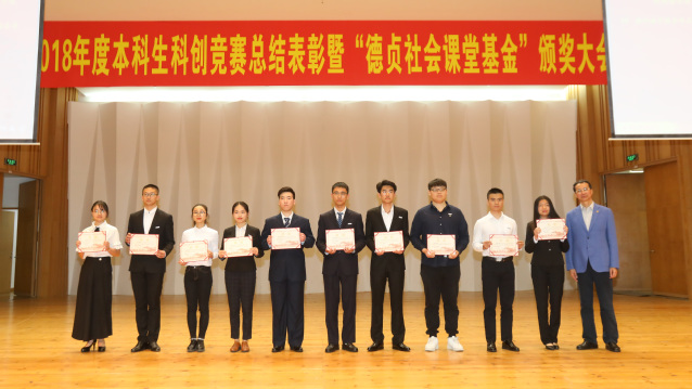 会上,学校总结了2018年度本科生科创竞赛工作,并表彰了2018年度本科生学业竞赛优秀项目暨“德贞社会课堂基金”学生学业竞赛奖53项, 2018年度本科生科创竞赛优秀指导教师暨“德贞社会课堂基金”优秀指导教师奖 24人,指导教师突出贡献奖5人,2018年度本科生科创竞赛工作先进个人16人,2018年度本科生优秀论文奖15篇,优秀大学生创新创业训练计划项目77项,最佳大学生创新创业训练计划项目10项,最佳创意项目10项,我最喜爱的项目10项,品牌校级学业竞赛项目10项, 2018年度本科生科创竞赛工作先进集体7个。