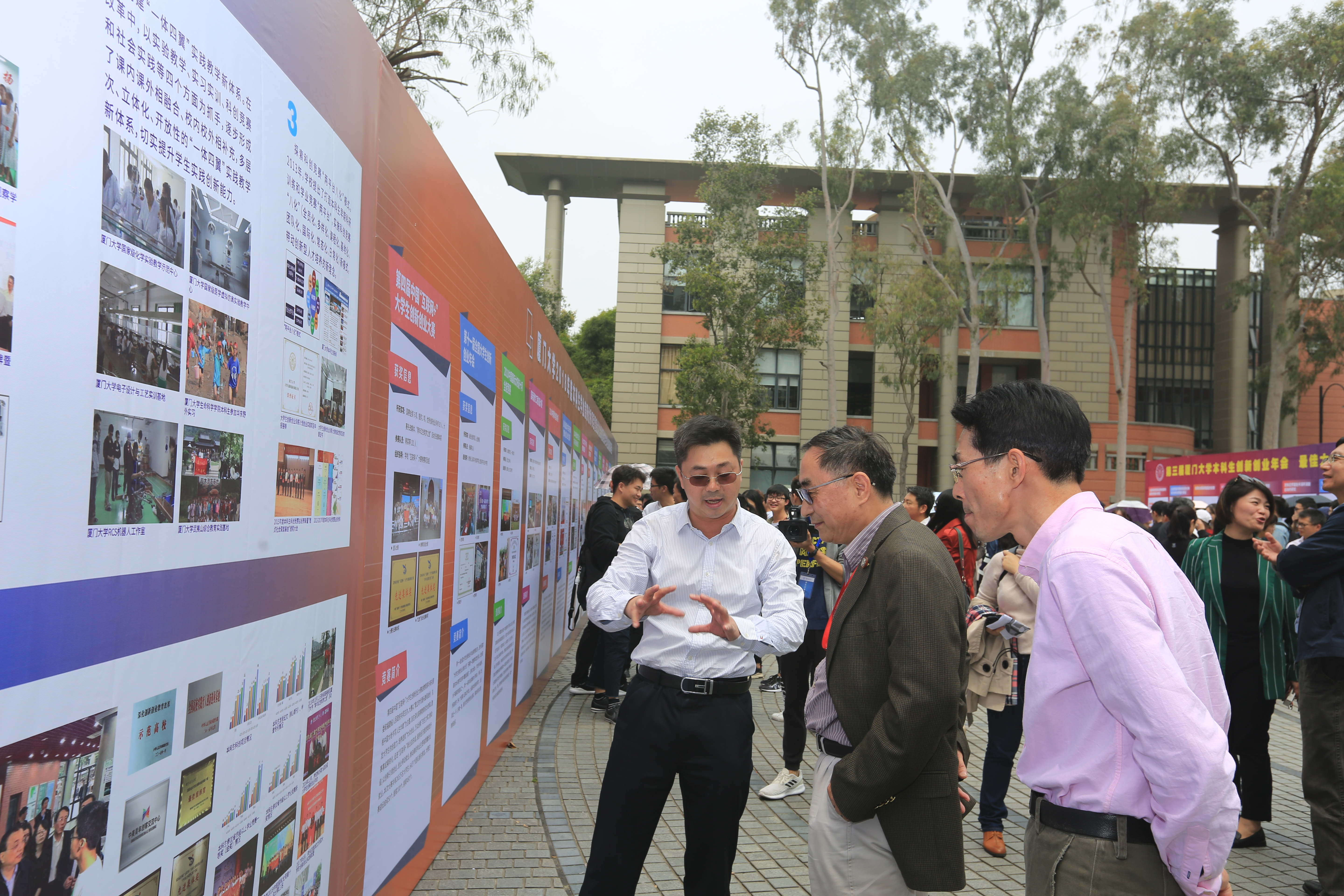 开幕式结束后,与会领导集中参观了成果展览。他们在一个个展板前驻足,仔细浏览项目情况介绍,与项目负责同学展开深入的交流和探讨,高度赞赏参展项目。
