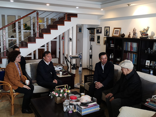 会后,杨贤金一行首先前往看望了中科院院士田昭武。杨贤金对田昭武院士获得“福建省第五届杰出人民教师”荣誉称号表示祝贺,感谢其为国家教育事业及科研发展作出的重要贡献,对于其在耄耋之年仍心系国家、积极建言献策表示钦佩,并叮嘱其多保重身体。