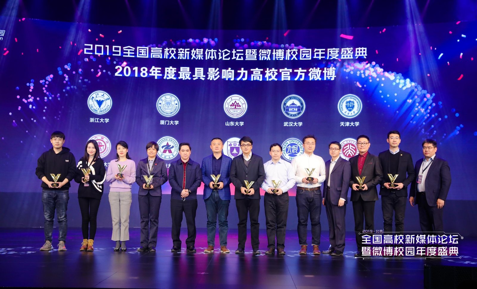 2月28日,“2019全国高校新媒体论坛暨微博校园年度盛典”在北京举行,以“凝聚•突破•引领”为主题,全方位探讨了高校新媒体发展的新趋势、新思路。论坛发布了《2018校园微博发展年度报告》,我校官方微博荣获“2018年度最具影响力高校官方微博”称号。
