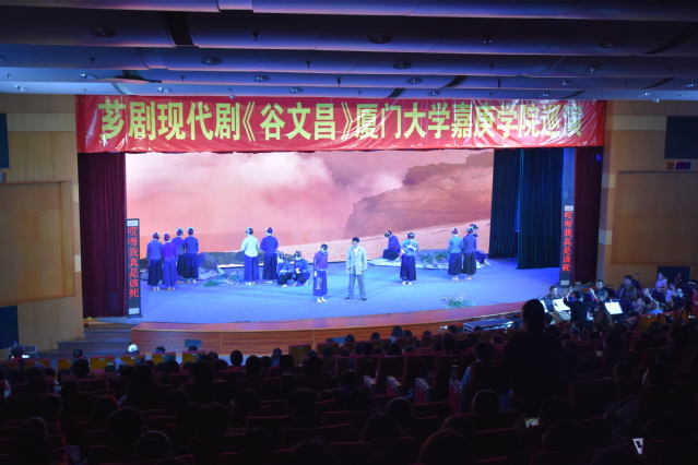 3月3日晚上7点到9点10分,由福建省文化和旅游厅、漳州市人民政府共同出品,漳州市歌仔戏(芗剧)传承保护中心倾力打造的芗剧现代剧《谷文昌》在我校漳州校区主楼群3号楼大报告厅上演。漳州校区党工委、管委会、嘉庚学院领导和500多名师生观看了演出。当演员们谢完幕,师生们发自内心地为这出戏点赞。