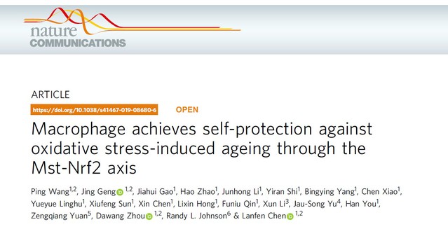 2月14日, 细胞应激生物学国家重点实验室、细胞信号网络协同创新中心、厦门大学生命科学学院陈兰芬教授课题组在《Nature Communications》上发表了题为“Macrophage achieves self-protection against oxidative stress-induced ageing through the Mst-Nrf2 axis”的研究论文,揭示了巨噬细胞中的Hippo激酶Mst1/2能够感应ROS并募集到自吞噬体和线粒体的ROS产生部位并被释放的ROS活化,进而激活抗氧化转录因子Nrf2来维持胞内氧化还原稳态,从而在巨噬细胞对病原体清除期间保护细胞免受氧化损伤导致衰老与死亡的重要机制。
