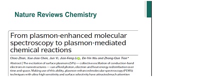 化学化工学院田中群教授研究团队从表面等离激元增强分子光谱到表面等离激元介导化学反应研究成果综述From plasmon-enhanced molecular spectroscopy to plasmon-mediated chemical reactions,近日发表在国际学术期刊Nature Reviews Chemistry, 2, 216–230 (2018) 。