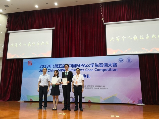 2018年6月9日-6月10日,由全国会计专业学位研究生教育指导委员会、教育部学位与研究生教育发展中心主办的,西南财经大学承办的2018年(第五届)中国MPAcc学生案例大赛在西南财经大学顺利举行。由我校管理学院专业硕士中心2017级MPAcc王志伟、赫振欣、黄楚暄、徐晓璇、许艺萌、王蔓蓉这6位同学组成的Warriors代表队获2018年(第五届)中国MPAcc学生案例大赛一等奖,Warriors代表队指导老师刘峰教授获得最佳指导教师奖,赫振欣同学获得决赛个人最佳表现奖。