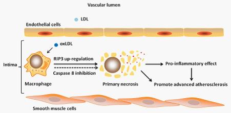 人们在90年代就发现动脉粥样硬化病灶内部存在大量巨噬细胞凋亡和坏死,到目前为止几乎所有有关细胞死亡在动脉粥样硬化中的致病功能的研究都集中在巨噬细胞凋亡上。巨噬细胞坏死的作用则一直没有被探究,这是因为之前细胞坏死始终被看作是一种意外发生且失控的细胞死亡方式,所以大家一致认为该病中的细胞坏死是一种凋亡后的事件,即继发性坏死(SecondaryNecrosis),而非原发性坏死(PrimaryNecrosis)。韩家淮课题组质疑了这一观点,并对于细胞坏死在该病中的作用怀有极大的兴趣,首次证实了动脉粥样硬化中的细胞坏死含有原发性的程序性坏死,这种原发性坏死在晚期动脉粥样硬化发展中起到重要的作用。这项研究彻底改变了人们对动脉粥样硬化中巨噬细胞死亡的认识。