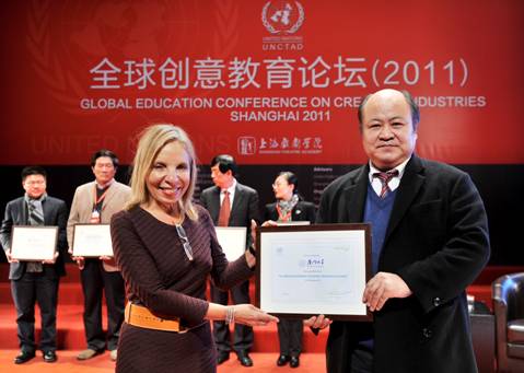 “全球创意教育论坛(2011)”于12月2日至4日在上海召开,“联合国贸发会议创意经济学术网络”首次在本次论坛上正式发布,中国首批学术机构将通过论坛平台正式加入联合国创意经济学术网络,厦门大学是首批入选的15所高校之一(包括香港、台湾),我校艺术学院院长苏力在会上接受联合国贸易与发展会议(UNCTAD)创意经济计划署主任艾德娜·多斯·桑托斯(Edna Dos Sandos)授牌。