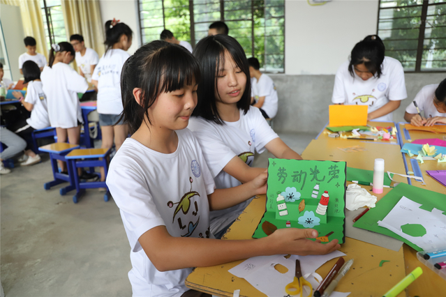 为贯彻落实中共中央、国务院印发的《关于全面加强新时代大中小学劳动教育的意见》,引导营员们树立正确的劳动观,在劳动中提升综合素质、促进全面发展,本次夏令营设计召开“如果我们生活中没有劳动”主题班会。实践队指导营员们亲手制作精美贺卡来致敬劳动者,感恩劳动者的奉献和付出,让同学们认识到加强劳动教育的重要意义,在实践中“以劳树德、以劳增智、以劳育美”,在社会实践中受教育、长才干、作贡献,努力成长为担当民族复兴大任的时代新人。