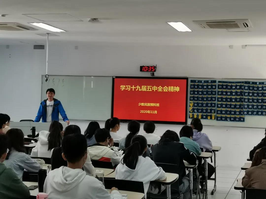 少数民族预科生管理中心于11月12日召开主题班会,组织2020级少数民族预科生学习贯彻党的十九届五中全会精神。