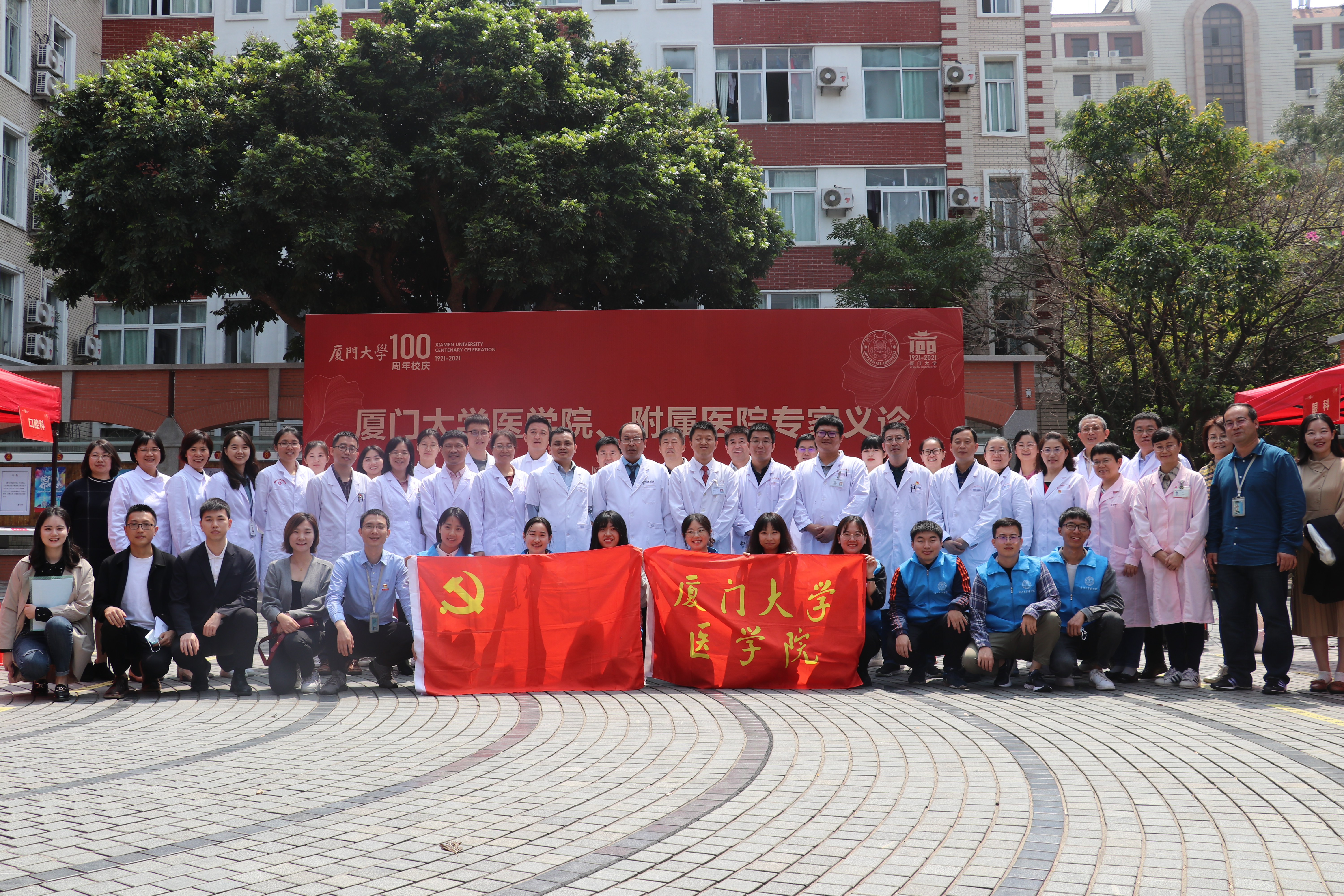 为庆贺厦门大学百年华诞,3月20日上午,医学院与各附属医院在思明校区三家村广场举办 “迎校庆,送健康”大型专家义诊活动,发挥专业优势,展示学科成果,回馈师生员工。开诊仪式由医学院副院长、附属翔安医院肝胆外科李文岗教授主持。