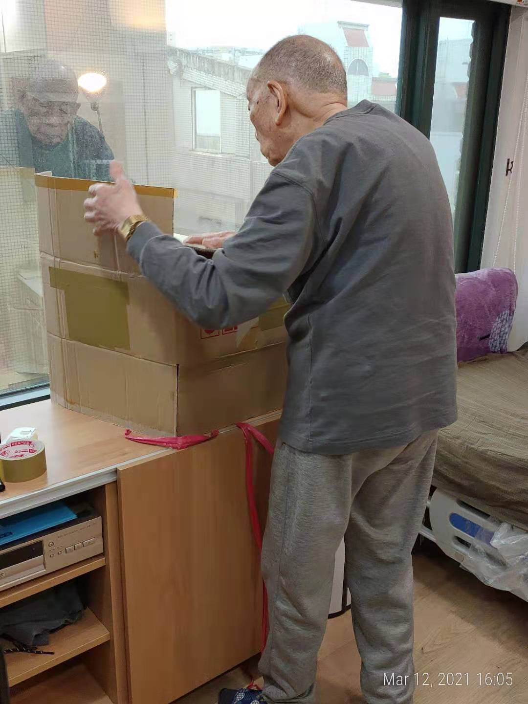 (周咏棠老校友亲自为送母校的纪念盘打包。)