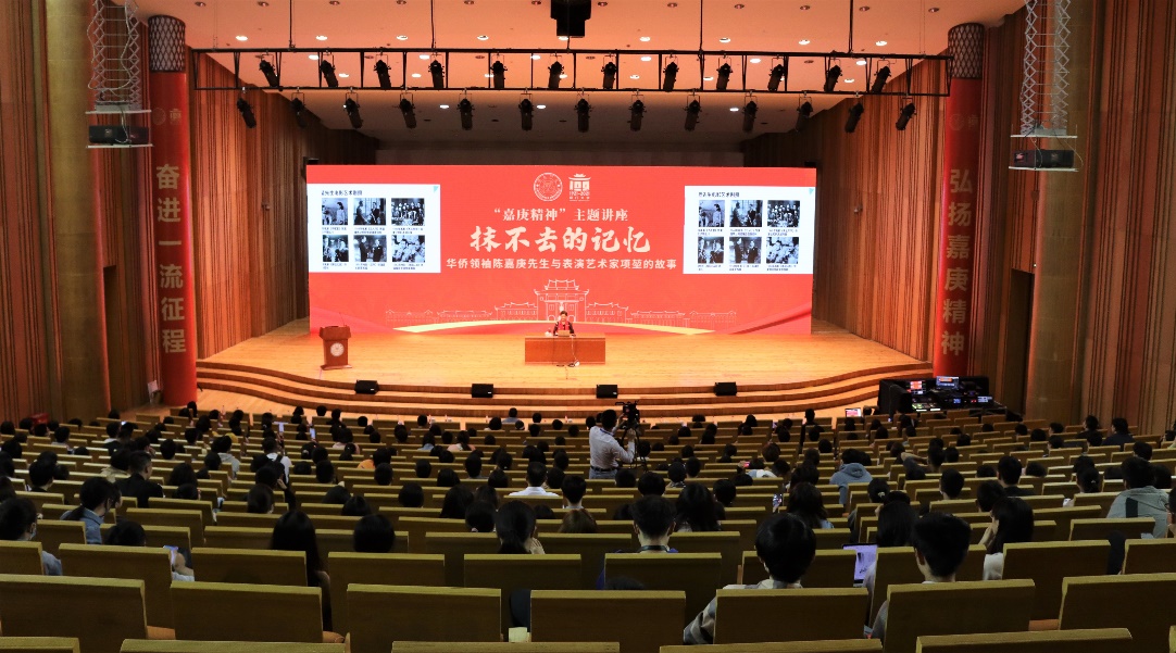 4月7日晚上,“嘉庚精神”讲座在科学艺术中心音乐厅举行。项堃女儿、舞蹈家王慧力应邀为师生作题为《抹不去的记忆——华侨领袖陈嘉庚先生与表演艺术家项堃的故事》的报告。陈嘉庚长孙陈立人出席,百年校庆文体组组长赖虹凯致辞,宣传部副部长楼红英主持。