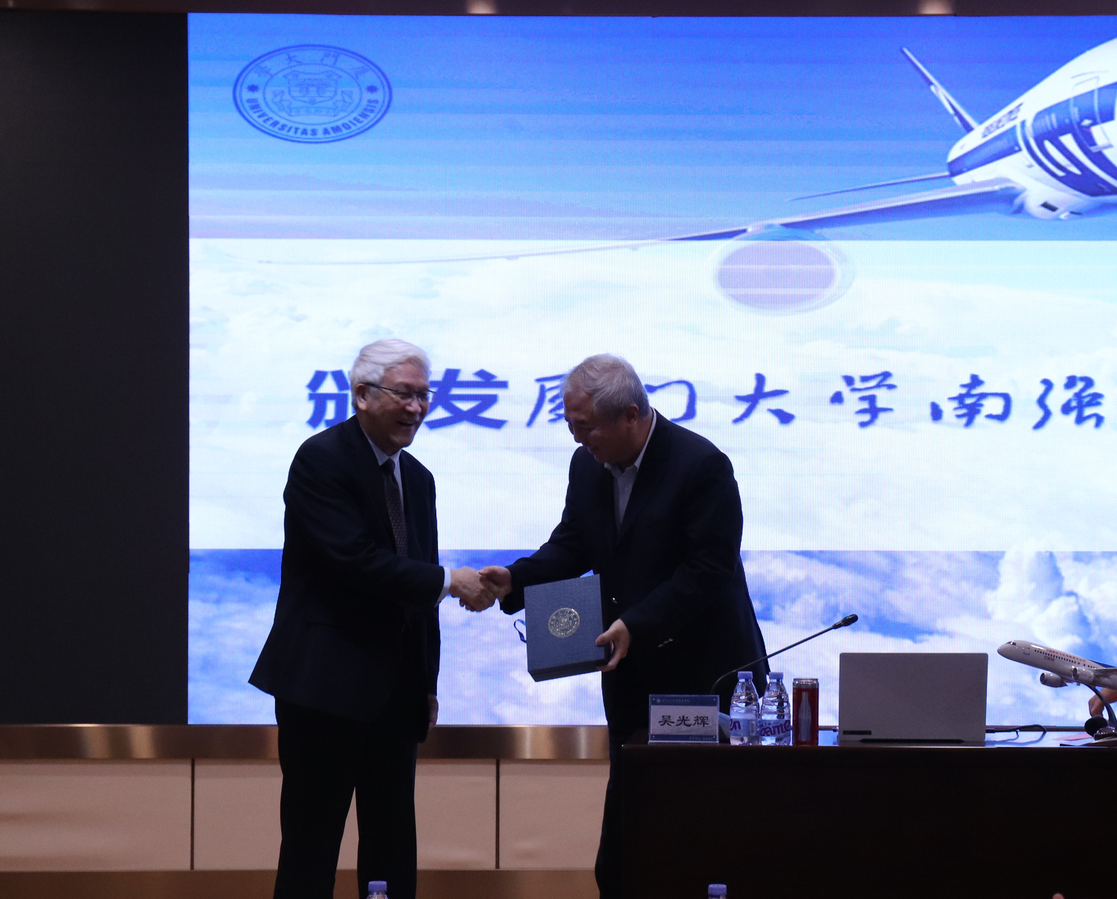 首先,尹泽勇院士为吴光辉院士颁发了厦门大学南强讲座纪念奖牌。