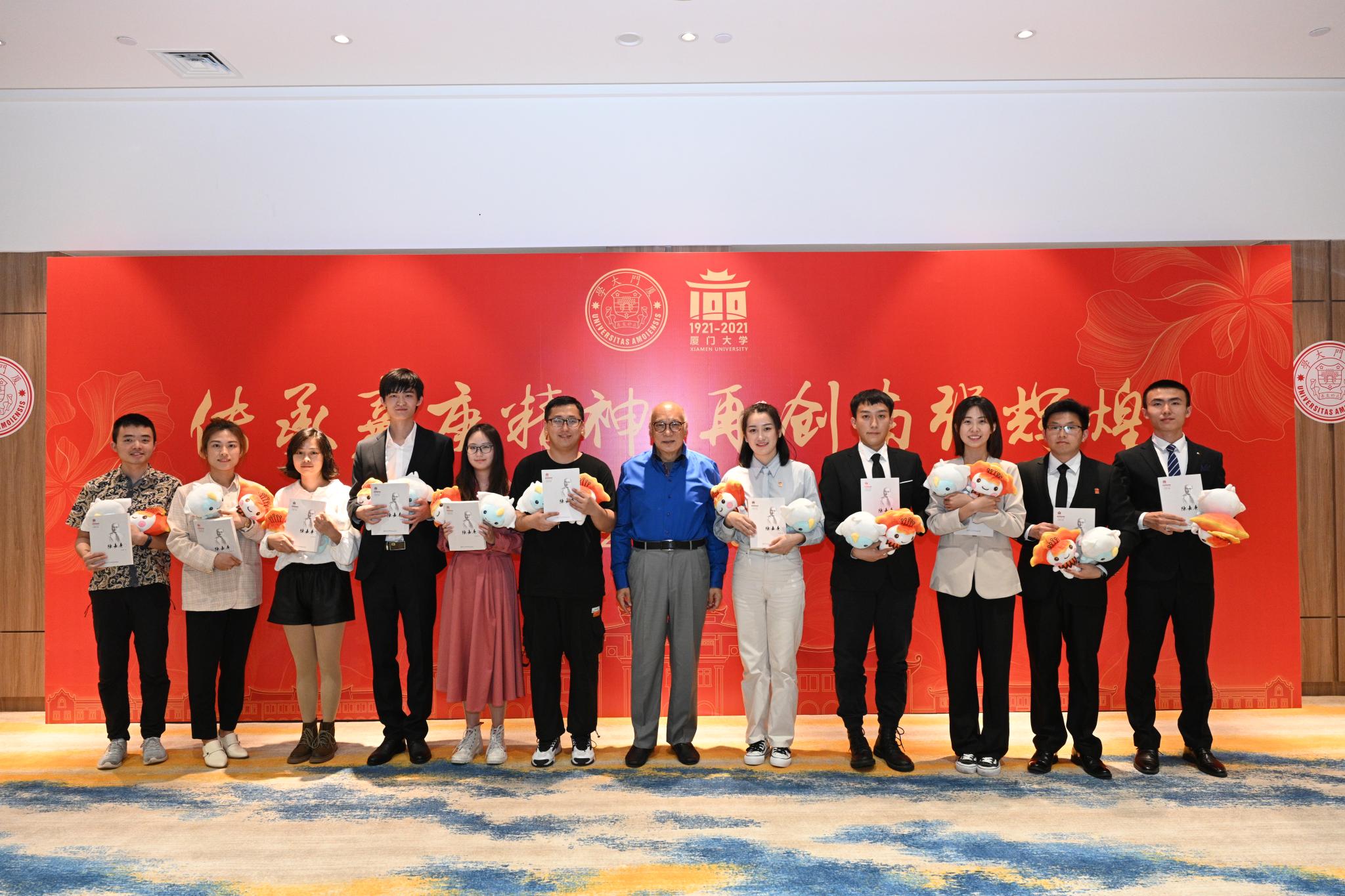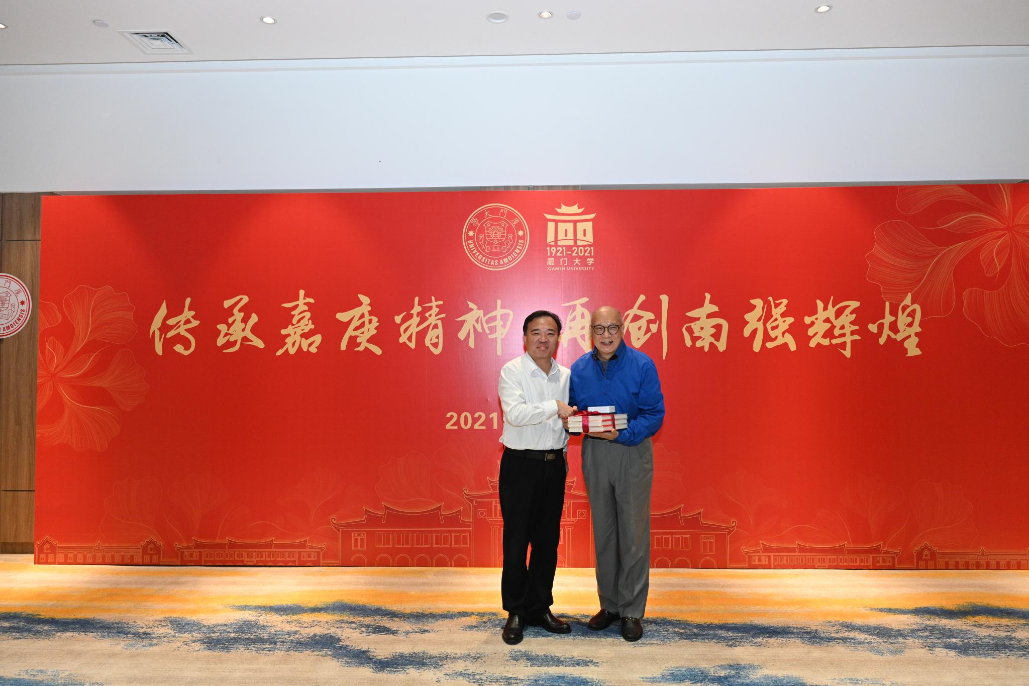 座谈会开始前,陈立人向与会同学赠送《陈嘉庚传》,张彦代表学校向陈立人赠送《为吾国放一异彩——厦门大学与伟大祖国》。